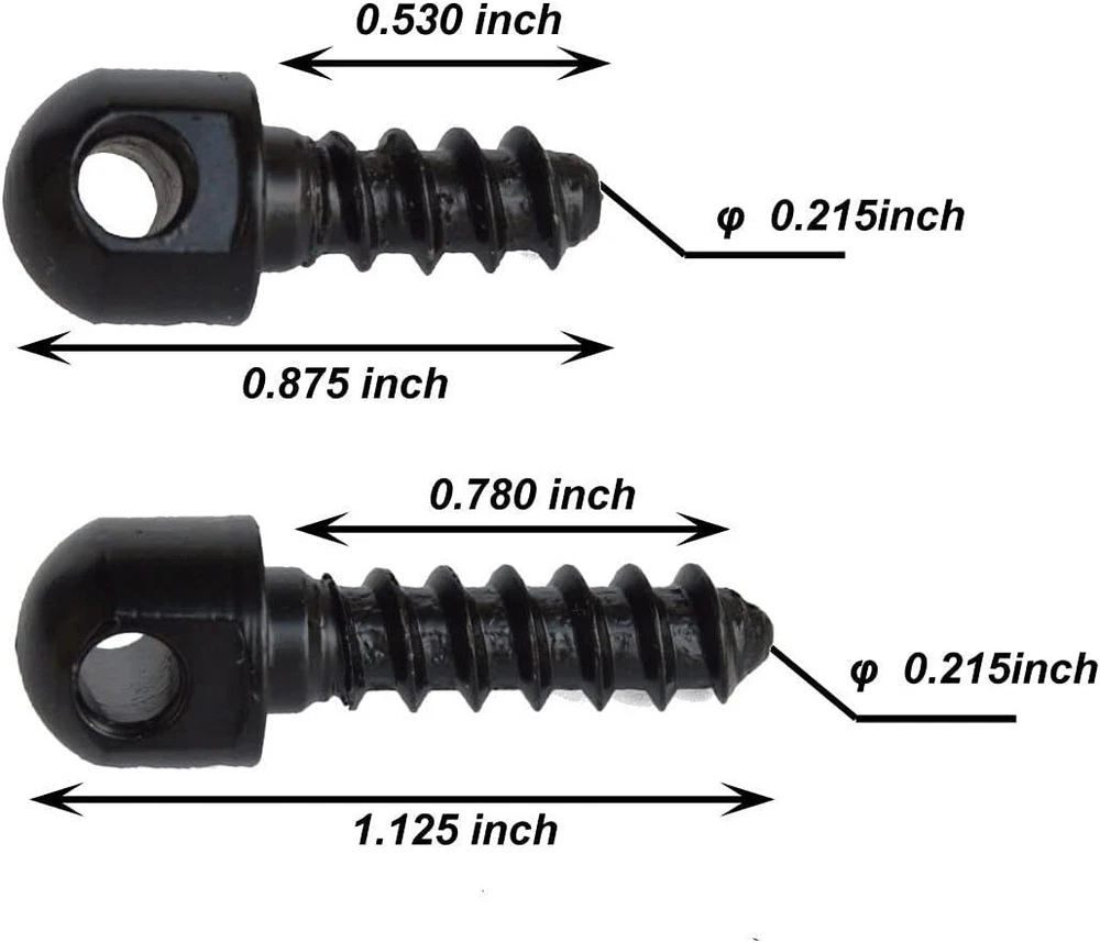 This is a set of Allen sling rotary stud kits. The Screws Swivel Wood Screw Stud is ideal for mounting slings on rifles or 3 pieces 1/2 inch swivel screws,3 pieces 3/4 inch swivel screws White spacers included. Excellent set of sling studs . Built with Carbon Steel, works for wood or syntheic stocks.Surface electrophoresis process, anti-corrosion, anti-rust. Easy to install .Using drill to drill hole to install screw or using threaded bolt to through hole Recommended to use 1/8-inch drill bit to punch mounting screws. Product Description Rifle or Swivel Screws Set Precision Made Machine and Wood Screws High Tensile Strength Metal Accommodates most slings with quick-release swivels, Standard sling adapter hole, suitable for most standard sling swivels and bipods Easy to Install Super easy to install on your rifle, using drill to drill hole to install screw or using threaded bolt to through hole. Swivel Screws 3/4" for the Buttstock White Spacers 1/2" for the fore-end White Spacers This is a set of Allen Sling rotary stud kits. The Screws Swivel Wood Screw Stud is ideal for mounting slings on rifles