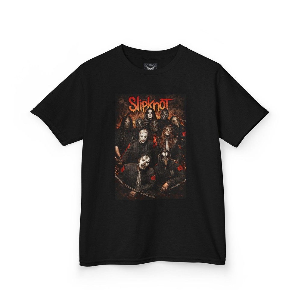 A sturdy, soft kids' tee made for little fans who love loud music and bold style. The black midweight cotton holds vibrant Direct-to-Film artwork with crisp detail and lasting color. The crew neckline and classic cut give comfortable room to move, while shoulder tape and a ribbed collar keep the shape through washes and play. It sits naturally in a rock-lover’s wardrobe — ready for weekend shows, band practice in the garage, or layering under a hoodie for chilly nights at an outdoor concert. Ethically sourced US cotton and Oeko-Tex certification add the quiet reassurance parents appreciate, while tear-away labels keep it itch-free for active kids. Product features - Tube-knit body reduces fabric waste and creates a clean, seamless side profile - Ribbed, seam-free collar for extra stretch and shape retention - Shoulder twill tape stabilizes the back to prevent stretching - Durable Direct-to-Film artwork for vivid, long-lasting print; inner neck DTF label option - Midweight 100% US cotton (heathers vary) — soft, Oeko-Tex certified, tear-away labels for comfort Care instructions - Machine wash: warm (max 40C or 105F) - Non-chlorine: bleach as needed - Tumble dry: medium heat - Iron, steam or dry: low heat - Do not dry clean
