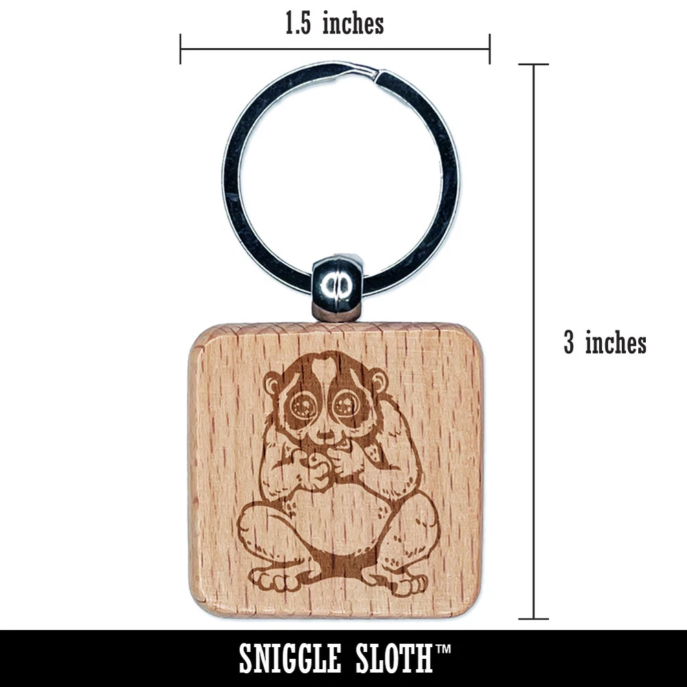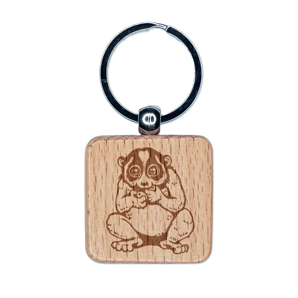 Slow Loris Eating Grapes Engraved Wood Square Keychain Tag Charm