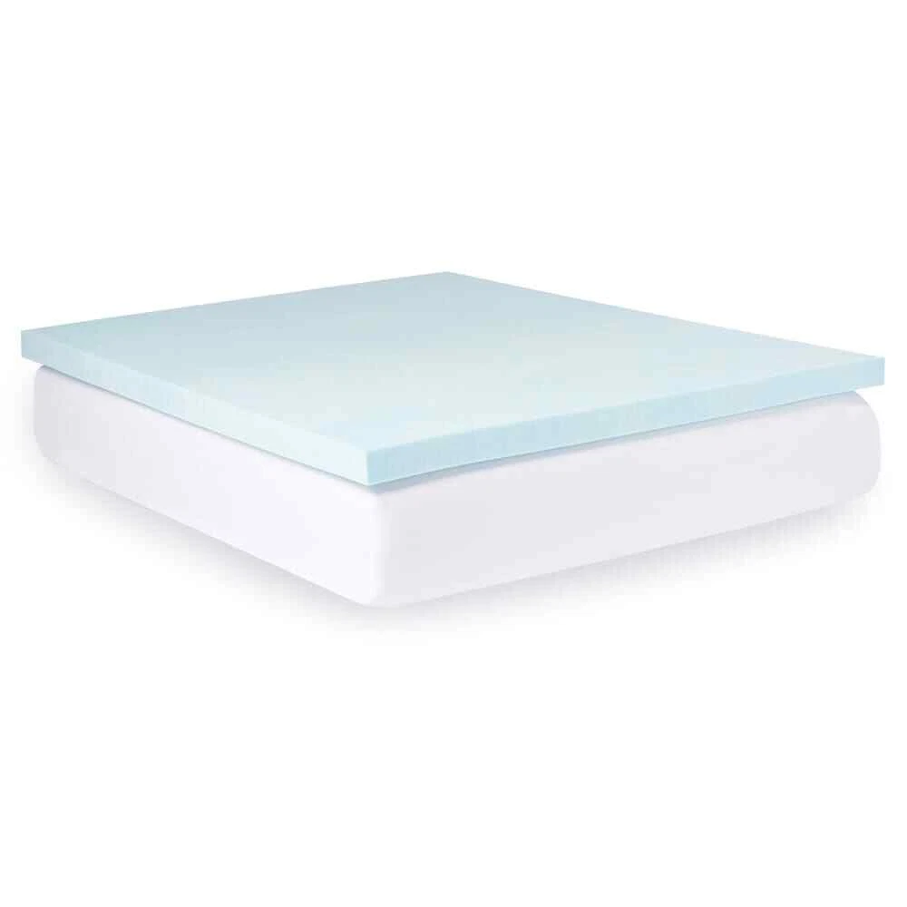 Eliminate pressure points on your body while you sleep with this comfortable Slumber Solutions gel memory foam mattress topper. Available with its own mattress cover, this memory foam mattress topper allows you to rejuvenate your old mattress for added softness. The durable cover is machine washable for easy care and cleaning.Gel infused into foam to prevent sheddingTopper sized slightly smaller than mattress to ensure proper fit of sheetsType: Gel Memory foamMattress topper measures 3 inches thickMaterials: Polyurethane foam and gelDensity: 3.5 poundsHelps rejuvenate tired muscles and eases back painMeets all flammability standards300 thread count 100-percent Egyptian cottonCover stretches to fit 17-inch mattressCover care instructions: Machine washDimensions: Twin: 37 inches wide x 73 Free Shipping Over $49.99* Details Slumber Solutions Gel Memory Foam 3-inch Mattress Topper with Cover Product Description: Eliminate pressure points on your body while you sleep with this comfortable Slumber Solutions gel memory foam mattress topper. Available with its own mattress cover, this memory foam mattress topper allows you to rejuvenate your old mattress for added softness. The durable cover is machine washable for easy care and cleaning. Gel infused into foam to prevent shedding Topper sized slightly smaller than mattress to ensure proper fit of sheets TypeGel Memory foam Mattress topper measures 3 inches thick MaterialsPolyurethane foam and gel Density3.5 pounds Helps rejuvenate tired muscles and eases back pain Meets all flammability standards 300 thread count 100-percent Egyptian cotton Cover stretches to fit 17-inch mattress Cover care instructionsMachine wash Dimensions Twin37 inches wide x 73 inches long Full52 inches wide x 73 inches long Queen58 inches wide x 78 inches long King75 inches wide x 78 inches long California king70 inches wide x 82 inches long Memory Foam Tips Remove from packaging within 72 hours of receipt to maximize memory foam expansion. This product arrives very tightly packed. Unwrap and allow 48 hours for this product to return to its original shape. Being sealed in plastic packaging sometimes traps odors. After unwrapping, allow product to air for a few hours. Due to machine-cutting manufacturing processes, there may be slight variances in the dimensions of this product. Due to the nature of Memory Foam the firmness level of every item is unique. Please be advised that even similar products may produce different firmness results. Click here to view mattress topper buying guide.