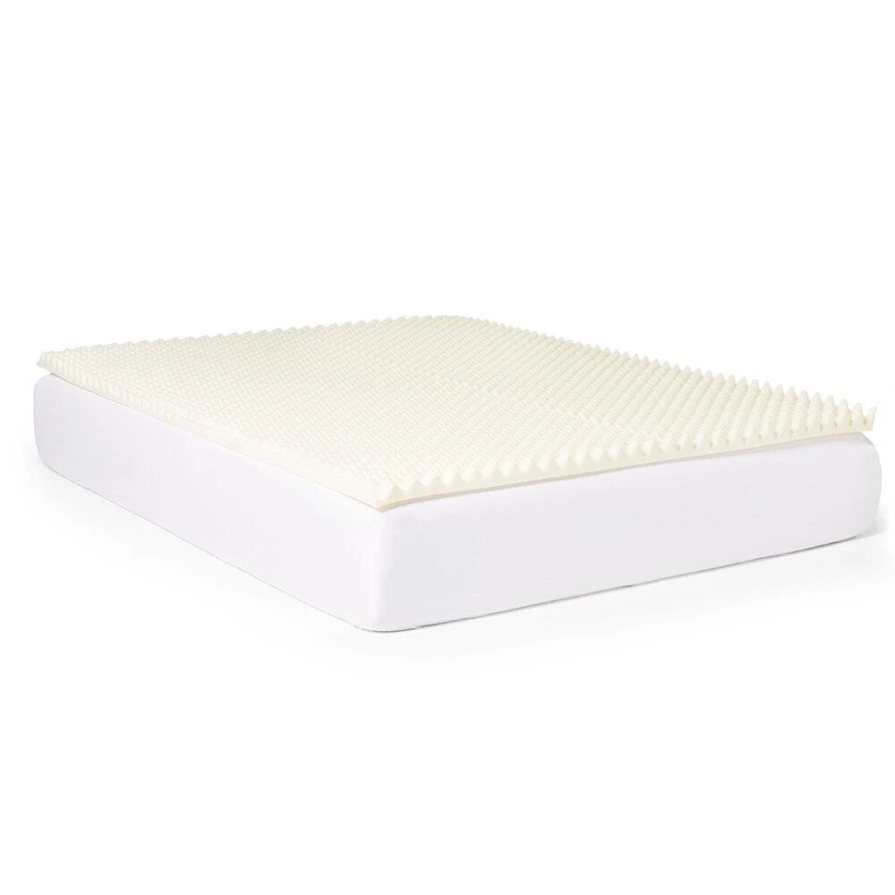 Sleep comfortably and wake up refreshed with this memory foam mattress topper developed using PostureFoam technology that provides support while sleeping at any position. The 2 inch mattress topper features a reversible-dual sleep design for a smooth and well textured sleep surface. Additionally, the foam textured design allows extra air flow in the mattress for maximum comfort.PostureFoam technology was developed to provide much greater air circulation throughout the pad, while creating the perfect support for every sleeping positionOpen air memory foam features an improved cell structure, designed to maintain the original shape and feel for the life of the productImproves your sleep so you wake refreshedReversible dual sleep design features your choice of smooth or textured sleep Free Shipping Over $49.99* Details Slumber Solutions Highloft Cool 2-inch Memory Foam Mattress Topper Product Description: Sleep comfortably and wake up refreshed with this memory foam mattress topper developed using PostureFoam technology that provides support while sleeping at any position. The 2 inch mattress topper features a reversible-dual sleep design for a smooth and well textured sleep surface. Additionally, the foam textured design allows extra air flow in the mattress for maximum comfort. PostureFoam technology was developed to provide much greater air circulation throughout the pad, while creating the perfect support for every sleeping position Open air memory foam features an improved cell structure, designed to maintain the original shape and feel for the life of the product Improves your sleep so you wake refreshed Reversible dual sleep design features your choice of smooth or textured sleep surface TypeMemory foam Textured foam design provides additional air flow for maximum comfort Density3 pounds Dimensions Twin37 inches x 72 inches Full51 inches x 72 inches Queen58 inches x 77 inches King75 inches x 78 inches California king70 inches x 80 inches Memory Foam Do's and Don'ts Remove from packaging within 72 hours of receipt. This product arrives very tightly packed. Please unwrap and allow 48 hours for this product to return to its original shape. Being sealed in plastic packaging sometimes traps odors. A few hours of airing usually removes the odor. Due to machine cutting manufacturing processes, there may be slight variances in the dimensions of this product. Topper dimensions may be slightly smaller than your mattress dimensions. Size has been designed to allow you to easily secure your fitted sheet over your new memory foam topper. Due to the nature of Memory Foam the firmness level of every item is unique. Click here to view other sizes. Click here to view mattress topper buying guide.
