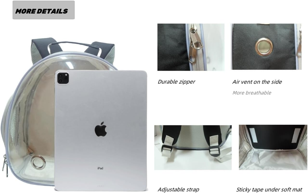 1.Space capsule appearance Design:The unique and popular space capsule design makes your pet feel safer, comfortable, and gives it a wider view of the outside. 2.Large size for small animals: 11.8*8.2*12.6 inch,Big enough for bearded dragon ,guinea pig, rabbit, bunny,squirrel, hamster, parrot, small dog, cat and other animals. 3.Breathable Design:Our Guinea pig Bunny backpack carrier has 5 vents in front and both top sides,1 opening net window,1 mesh pocket for store snacks and water cup,ensuring fresh air and airflow for fur pet,enough internal space, allowing your little pets to move freely inside. 4.Durable&Ergonomic Design:with High-quality PC, and oxford cloth material,The straps of backpack can absorb sweat and relieve the pressure from your backpack to make you feel more comfortable. 5.Our hamster backpack carrier includes 1 carrier,1 removeable and washable support mat,There are adhesive straps under the mat that connect to the bottom of the backpack to prevent the mat from moving. 6.Our rabbit bunny carrier backpack is light, easy to store,also good for your kids to take your fur pets outside,make hiking, traveling, biking and walking more convenient. Our product is Lightweight,easy to clean and storage. Color:Green,pink,black Size:11.8*8.2*12.6 inch Package included:1 carrier,1 soft mat.