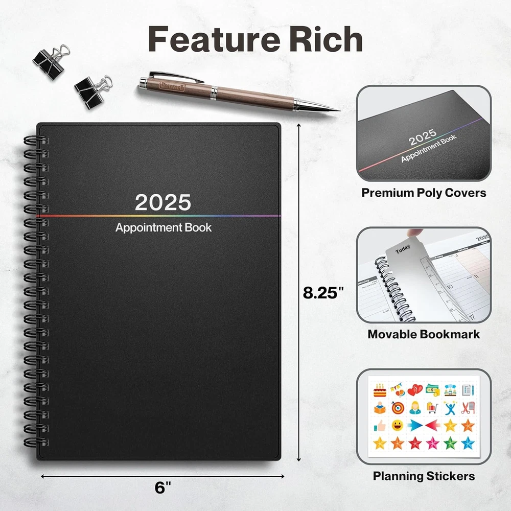 Store New Arrivals Add to Favorite View Feedback Contact Fast deliveries to the customer's home Quality customer service John Make the customers happy! Small Appointment Book 2025, 6X8" (Colorful), Jan - Dec 2025, Quarter Hourly Schedule Book, Daily Planner with Monthly Tabs, 15 Min Slots Description Small Appointment Book: 6 x 8-1/4", 12 Months, Use Jan 2025 to Dec 2025, Dated agenda booklet for time management planning. Compact size. Professional style for work or personal use. Weekly Daily View: Weekday schedule with 15 minute increments, 8am to 8pm; Saturday has 30 min time slots, 8am to 8pm; Sunday runs 8am to 7pm. 3-month reference on top, current week highlighted. Tabbed Monthly View: Two-page spread calendar overview for each month. Ample writing space in lined day boxes, Includes previous and next month, Holidays, Day of the year counters, Notes block. Special Pages: Yearly Overview, Quick Reference, Contacts, Important Dates (birthdays, anniversary, etc.), Holidays, USA Time Zones and State Capitals, 15 pages for Notes in back. Feature Rich: Sturdy poly cover. High quality thick paper. Spiral binding to open flat or fold over. Includes planner stickers, clear 2-sided pockets in back, laminated movable bookmark. Product Description 6x8.25" Appointment Book Scheduler - Colorful Use January to December 2025 Perfect for School, Home or Office Your Choice of Sizes (6x8.25" or 8.5x11") With a compact size of 6x8.25 inches, this smaller Daily Schedule Planner fits easily in backpack, computer bag, briefcase or purse. Or if you prefer a large desktop Appointment Book, the generously sized 8.5x11 version provides ample space for keeping you well organized. Monthly Views: Tabbed overview of each month includes previous and next month, a Notes block, holidays and day of the year counters. Weekly Views: Time management planner shows Monday - Friday, with each time boxed with 15 minute intervals. Saturday - Sunday use 30 minute intervals. Feature Rich Dated Monthly Views Weekly Views with Time Block Intervals Brightly Colored Design Sturdy Poly Cover, Twin Wire Spiral Binding Color Laminated Monthly Tabs Feature Pages (Notes, Contacts, Holidays, etc.) Includes Bookmark and Stickers Smaller 6x8.25" Size Includes Gift Box Feature Rich In addition to many special feature pages (Notes, Contacts, Holidays, etc.) you will also receive a snap-in bookmark and stickers for planners to mark your occasions, events and appointments. Sturdy Construction Constructed with sturdy acid-free poly cover and twin wire binding to lay flat when open. Uses thick paper to avoid ink bleed-through. Incorporates appealing design, similar to the popular Dunwell line of wall and desk calendars. Makes a Great Gift The smaller 6x8.25" book arrives in attractive gift box, ready for gift giving. Stay organized with date books and planners exclusively by Dunwell, the Trusted Name in Office Supplies. Item model number PAPP0608 Sheet Size 6 x 8.25 Inches Calendar Type Hourly, Weekly Format Notebook, Day to Day Calendar, Engagement Calendar, Bookmark Calendar, Organizer Color Colorful Cover Material Plastic Material Polypropylene, Paper Material Type Polypropylene, Paper Manufacturer Part Number PAPP0608 Style 2025 Item Weight 0.33 Kilograms Product Dimensions 8.25 x 6 x 0.67 inches Ruling hourly Year 2025 Target Audience Adult, Professional Size Small ABOUT US We offer the best prices around on high quality products. Our E-store includes media such as books, movies, music and games while offering electronics, toys, sporting apparel, clothing, tools, general home, garden items and more. SHIPPING We are always working hard to ensure your package arrives as soon as possible. Please understand that some factors like weather, high postal traffic, and the performance of shipping companies are outside of our control. We offer free shipping to the lower 48 states and ship within 2 business days of payment, usually sooner. We do not accept P.O. Boxes. Please provide a physical address. For shipping outside of the continental USA, we only use eBay's Global Shipping Program. The item is shipped to KY and then sent to the rest of the world. International customers are responsible for all duties and taxes. Continue to 'check out' to calculate costs for shipping the item to your country. Messages regarding eBay's Global Shipping Program MUST be directed at eBay EXCLUSIVELY. RETURNS We offer a 30-Day Return Policy on items in which you are not completely satisfied with. You have the option of a full-refund or an exchange of the item. No returns are available on items shipped outside of the USA PAYMENT We accept PayPal. CONTACT US This page content is yet to come Please ad us to your favorite seller and visit again later Thank You CUSTOMER SATISFACTION We try our very best to make sure every customer is completely satisfied. If there's a problem, message us! We're happy to help. WE ACCEPT