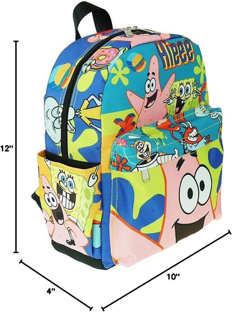 Durable 600-denier polyester exterior with full nylon interior lining Secondary front zipper pocket, Two side pockets Front organizer pocket for addition storage Adjustable shoulder straps, Fully padded back panel Backpack Measures: 12"H x 10"W x 4"D Official Licensed Product/ Manufacturer Minimum Age 3 years and older