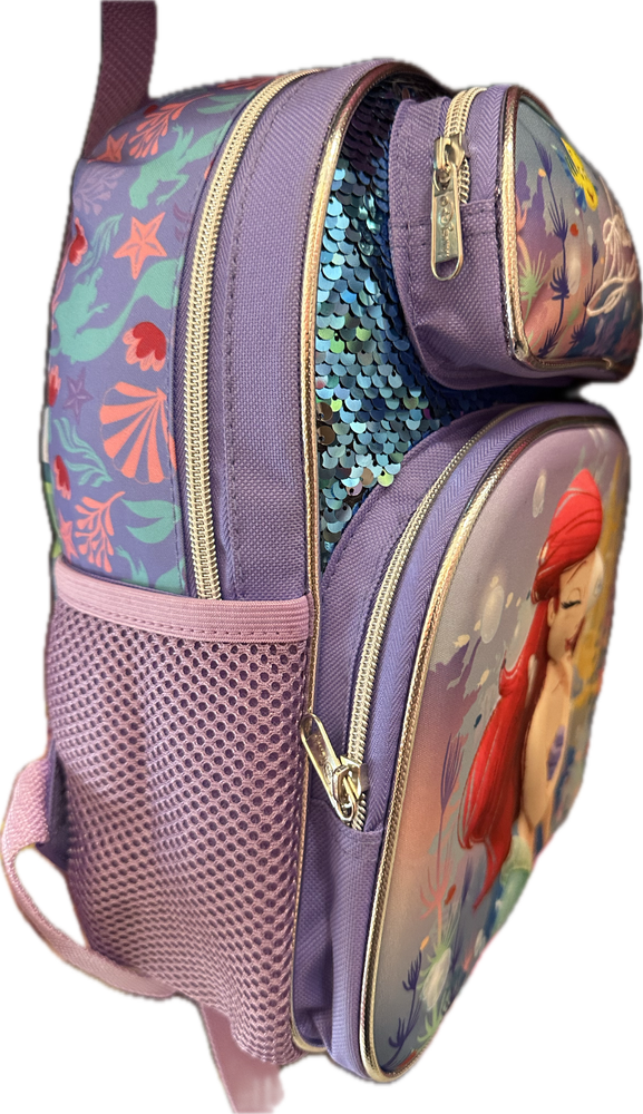 Two front zippered pockets. Size: 12" x 10" x 4.5" One spacious main compartment. One side mesh pocket. One side velcro flap pocket. Padded shoulder straps and back panel. Adjustable shoulder straps. Officially licensed product.