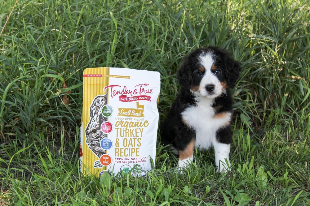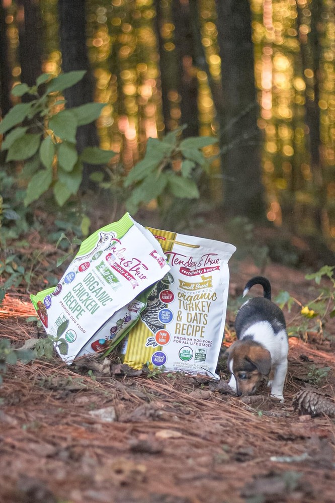 #1 ingredient is cage free USDA organic turkey Bite Size Kibble perfect for Small Breed Dogs Grain-inclusive organic diet