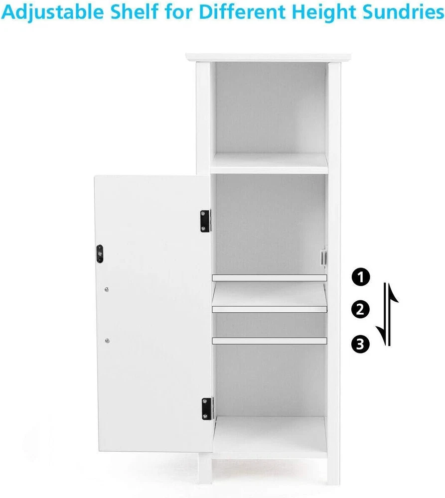 Product Description About this item • Multiple Storage Space: Frequently used bath essentials, such as toilet paper, towels, are able to be put in the doorless storage space of this floor cabinet for easy access. In the meantime, infrequently used items, like detergent, brushes, cleanser, are better to be stored behind the door, kept away from moisture. If you decide to use it as a side cabinet, then you can place album or other artworks on the top of the cabinet for displaying. • Compact Yet Practical Design: Measured 12” x 12” x 31.5” in size, this bathroom cabinet is absolutely great for small limited places. It won’t take much space in the room and will also add lengthwise storage space for storing more items to make the room appear tidier. Moreover, it allows you to install the anti-toppling fitting to the bathroom floor cabinet to avoid accidental toppling. If you happen to be in need of a floor cabinet with such size, ours would be your optimal choice. • Adjustable Shelf for Flexible Storage: The inner shelf is adjustable in three positions according to your preference, making the height of the storage space change with different shelf setting, allowing maximum space usage. • Easy to Assemble and Maintain: With the enclosed step by step instruction and necessary hardware, it is easy for you to have the bathroom floor cabinet installed in no time. Thanks to its smooth lacquered surface, it is convenient to clean and remove stains. • GLACER Promise: We proudly stand behind of this bathroom floor cabinet. If for any reason you are not satisfied with our floor cabinet, please contact us for solution and we are committed to making things right for you. We will respond within 24 hrs by offering feasible suggestion until problem is solved. Specification Color: White Material: MDF Net weight: 19 lbs Product dimensions: 12” x 12” x 31.5” (L x W x H) Weight capacity of each tier: 66 lbs Package includes: 1 x Bathroom storage cabinet 1 x Instruction Floor Storage Cabinet Ideal Storage Solution for Home Sicked of staying in a disordered room? Our exquisite and practical bathroom floor cabinet would be a right choice for you to start to own a tidy and clean room. With its chic and elegant appearance, it can also be used as a side cabinet to whether place it in the living room, adding a touch of elegance without any doubt! Features Minimalist yet practical design, matching most home decor Ample storage space, ideal for storing bath essentials, first aid kit, soaps, etc. Constructed of superior P2 MDF, assuring durability, stability, great load-bearing capacity Adjustable inner shelf for flexibility, storing things of different heights freely An open shelf for fetching daily toiletries easily Lacquered surface designed to withstand the humidity, making it suitable for bathrooms Ideal for bathroom, living room, kitchen, entryway, hotel, inns Easy to assemble with detailed instruction and enclosed hardware set On Aug 14, 2025 at 20:25:50 PDT, seller added the following information:
