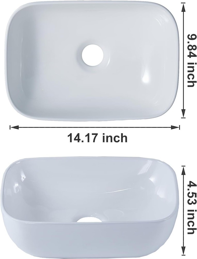 Small Ceramic Bathroom Vessel Sink 14x10 Inch Oval Countertop Wash Basin ‹ › ‹ › ‹ › ‹ › ‹ › ‹ › ‹ › ‹ › ‹ › Small Ceramic Bathroom Vessel Sink Size: 14x10 Inch Oval Countertop Wash Basin Product Overview: This stunning Small Ceramic Bathroom Vessel Sink is the quintessential blend of modern elegance and practicality. With its European-inspired design and a charming oval shape, this sink will elevate your bathroom décor, creating a serene and stylish space. Features: Modern Aesthetic: European inspired with a contemporary classic design; generous and refined. Ceramic Material: Crafted from delicate yet solid ceramic with a crystalline glaze that ensures longevity. Impact Resistance: Designed to withstand the wear and scratches of daily use, maintaining its pristine appearance. Easy to Clean: The smooth, baked glaze provides a high gloss finish that is stain-resistant and acid-resistant, facilitating effortless maintenance. Sink Dimensions: External Size: 14.17 x 9.84 x 4.53 inch; features a standard US 1.75” drain opening (faucet and pop up drain are not included). Hassle-Free Installation: The countertop design allows for easy installation without needing to replace your entire vanity. Why Choose Our Bathroom Vessel Sink? Transform your bathroom into a sanctuary of elegance with our Small Ceramic Bathroom Vessel Sink. Its unique oval shape and ceramic construction not only provide functionality but also add a fashion-forward accent to your space. Experience the benefits of easy maintenance and durability that ensures your sink remains a stunning focal point for to come. Upgrade your home with a touch of sophistication. Order your Small Ceramic Bathroom Vessel Sink today and enjoy a blend of style and practicality that complements your lifestyle. Shipping Free & Fast Shipping - We offer free shipping to most of the USA with a normal delivery time of 3-7 days. However, due to the current situation, additional delivery time (up to 3 weeks) may be required for some items. Alternative Carriers - We may use alternative carriers (e.g. USPS, FedEx, UPS, etc.) to ensure your package arrives safely and on time. Due to the use of multiple carriers, we are unable to provide a tracking number automatically. Handling Time - Orders are processed and shipped within 1-2 business days of receiving cleared payment. Shipping Restrictions - Shipping to Alaska, Hawaii, Puerto Rico, Guam, and other US territories may incur shipping charges or delivery restrictions. Please contact us before ordering, or your order can be refunded/cancelled. State Restrictions - There may be restrictions based on your state of purchase. For example, certain items may not be shipped to California due to state regulations. Contact for Tracking Updates - If you require tracking updates or have any concerns about the delivery of your order, please feel free to contact us, and we will be happy to assist you. Return 30-Day Hassle-Free Returns - We want you to be completely satisfied with your purchase. If you are not, you can return the item within 30 days of receiving it for a full refund or exchange. Easy Return Process - To start a return, simply contact us and we will provide you with a prepaid return shipping label and detailed instructions. Restocking Fee - There are no restocking fees for returns. However, the buyer is responsible for return shipping costs if the return is not due to a seller's error. Refund Processing Time - Refunds will be processed within 5 business days of receiving the returned item in its condition. Payment We accept all major credit cards, PayPal, and Apple Pay for your convenience. Your payment information is secure and encrypted to ensure a safe and seamless transaction. Please complete your payment within 3 days of purchase to avoid any delays in shipping. Feedback Your feedback is extremely important to us. We strive to provide the best products and customer service possible. If you are satisfied with your purchase, please take a moment to leave us a positive review. If you have any concerns or issues with your order, please contact us before leaving negative feedback. We are committed to resolving any problems and ensuring your satisfaction. Contact Us If you have any questions or concerns, please feel free to out to our customer support team. You can contact us through the eBay messaging system. We are available Monday to Friday, 9:00 am to 5:00 pm EST, and we will do our best to respond to your inquiry within 24 hours. Buy it now and enjoy a pleasant shopping experience! Unit Quantity: 8.6 Room: Any Room,Bathroom Mounting: Vessel,Countertop Material: Ceramic Items Included: Sink Only Features: Easy to Clean,Stain Resistant,Acid Resistant,Impact Resistant Type: Vessel Item Width: Bathroom Vessel Sink Item Height: 5 Inches Item Length: Bathroom Vessel Sink Color: White Shape: Oval Bowl Shape: Standard Style: Modern Number of Faucet Holes: 1 Hole Finish: Ceramic Bowl Depth: Less than 10 cm Unit Type: lb