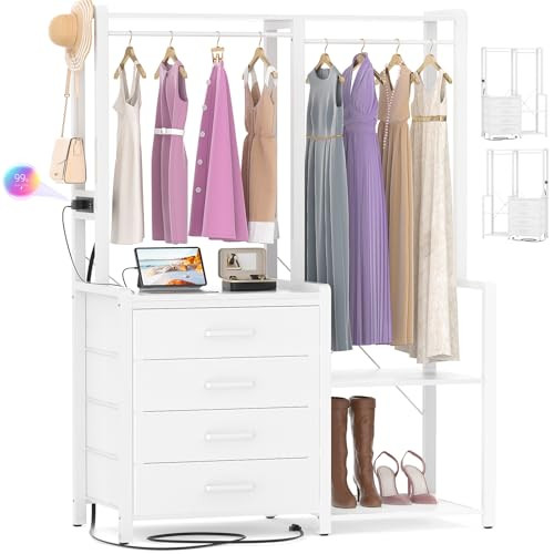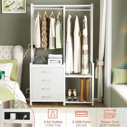 Menu 1. We require immediate payment. 2. We currently accept payment via eBay managed payments only. 3. Once payment is cleared, we will dispatch your shipment within 1-3 business days. Please refer to the "Shipping" tab for more information regarding shipping speed to your destination. Small Clothes Rack with 4 Drawers, Reversible Garment Rack with Storage Shelves & Charging Station, Freestanding Closet System Organizer with 2 Hooks for Small Spaces, White Product description ?Multifunctional Clothes Rack: The clothes rack has a total of 5 different types of storage space, 4 large drawers, 3 storage shelves, 1 t-shirt hanging rod, 1 long dresser/coat hanging rod, and 1 top storage shelf, allowing you to have a variety of storage methods in limited space to keep everything in organize. ?Garment Rack with 4 Fabric Drawers: Compared with wooden drawers, fabric drawers are easier to install, the garment rack has 4 large fabric drawers of 19.7" x 19.7" x 5.5", which provide private space while meeting the large storage capacity, and are very suitable for storing underwear, socks, pants, and other small items. ?Adjustable & Reversible Closet Organizers: The clothing rack is reversible, you can choose to install the drawers at left or right according to your habits. And the storage shelf on another side is height adjustable for stacking clothes, storage boxes or even shoes letting you place items flexibly. ?Small Clothing Rack with Charging Station: Small clothing rack (39.4" x 19.7" x 71" ) is a compact size it's perfect for small spaces, ideal to place beside the bed, and the charging station with 3 outlets and 2 USB ports is convenient for charging your phone, iPad. Attached 2 additional hooks that can be used to hang accessories like hats, scarves and belts. ?Easy Installation: The small closet rack is stable, solid, and easy to install, come with clear manual instructions, if you have any trouble installing our closet rack with drawers, or if you receive a damaged item, please feel free to contact us and we will solve the problem for you. PLEASE MESSAGE US IF YOU HAVE ANY OTHER QUESTIONS, AND MANY THANKS FOR READING ALL OF THIS. Copyright ©#. All Rights Reserved.