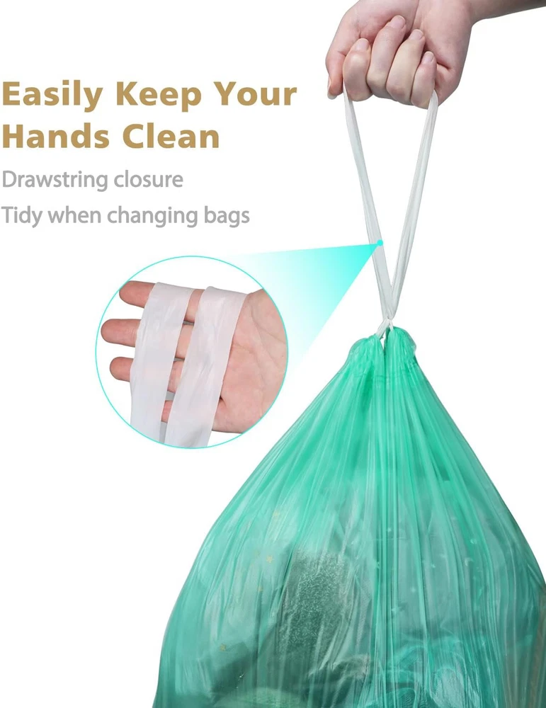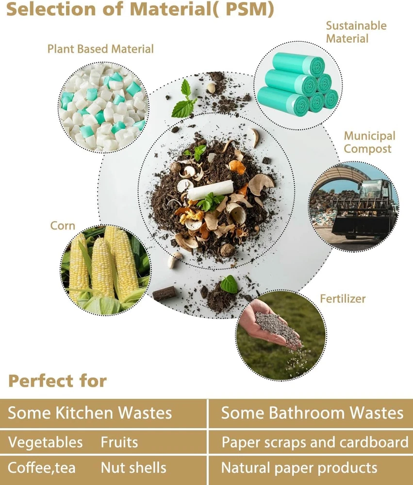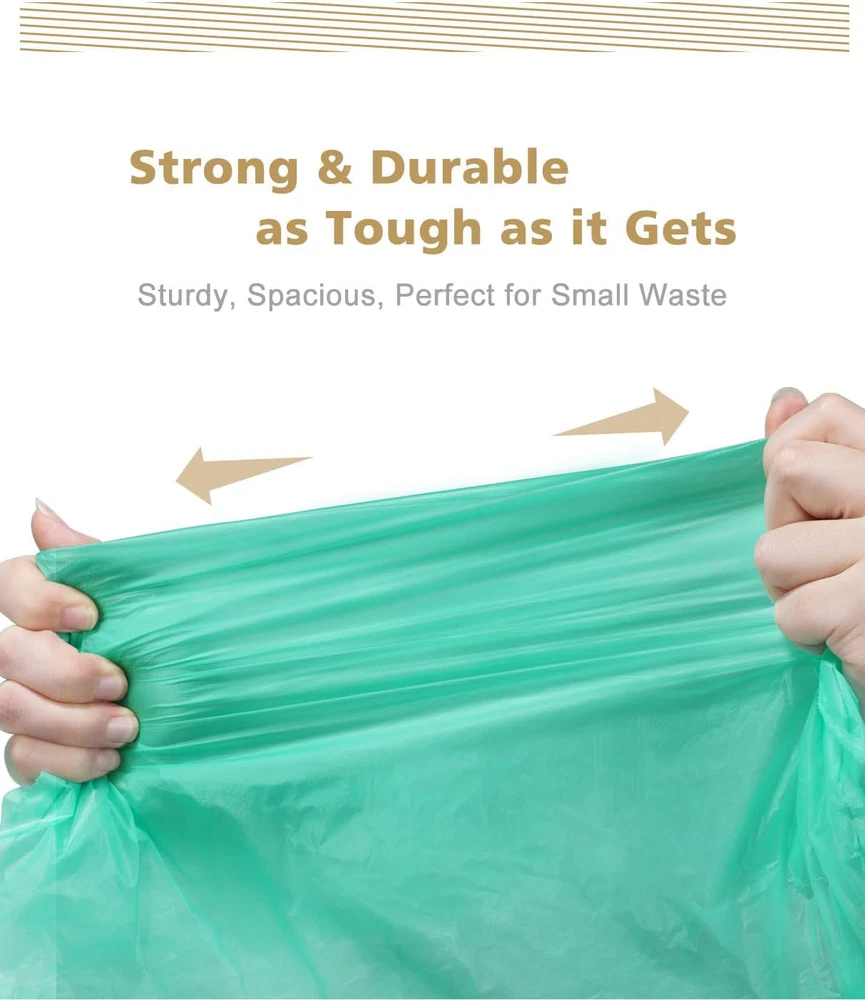 1 Gallon Trash Bags Drawstring: The waste basket trash bags with sturdy drawstring design makes the small compost bags 1 gallon easy to tie the bag and carry it to the trash can. The drawstring small compost trash bags 1.2 gallon keeps your hands clean 125 Count Small Compostable Bags: Our compost bags for countertop bin that are mainly made of PSM(corn starach) materials meets the standard ASTM. These small compost bags with sturdy drawstring design, which helps you to tie and lift the small compostable kitchen trash bags more convenient Small Trash Can Liners: Small Garbage Bags Bathroom (15.7x14.6 inches) fits round garbage bins with D≤ 10.7”, H≤ 13.7”, rectangular wastebaskets with L≤8”, H≤13.7”. Practical small trash liners for 4.5 liter to 5 liter in bathroom, bedroom, car, kitchen and office Thick & Leak Proof: Our 18-micron thick compost bin bags have medium thickness with star seal bottom helps to eliminate leaks. These small trash bags 1.2 gallon are thick enough to hold garbage, with excellent resistance to tearing or breaking No Smell 5 Liter Trash Can Bags: We promote these small biodegradable bags which are unscented, and decrease harm for the earth. The 1.3 gallon trash bag with drawstring control the odor very well. The thoughtful practical dispenser box design helps you easy to store and carry Small biodegradable trash bags