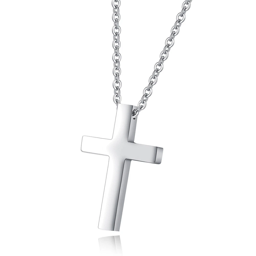 Men Women Plain Silver Stainless Steel Cross Pendant NecklaceBox Chain 16"-24"