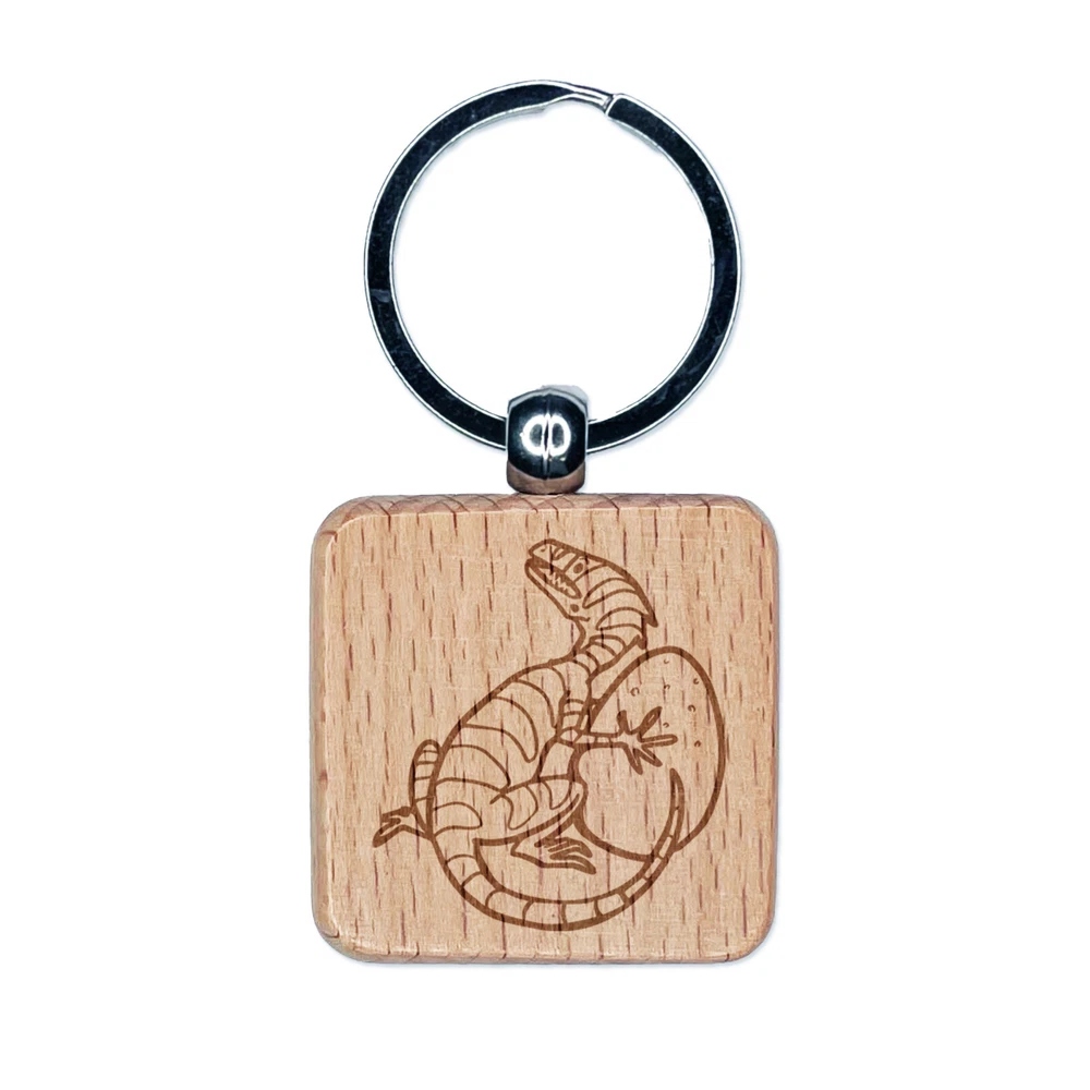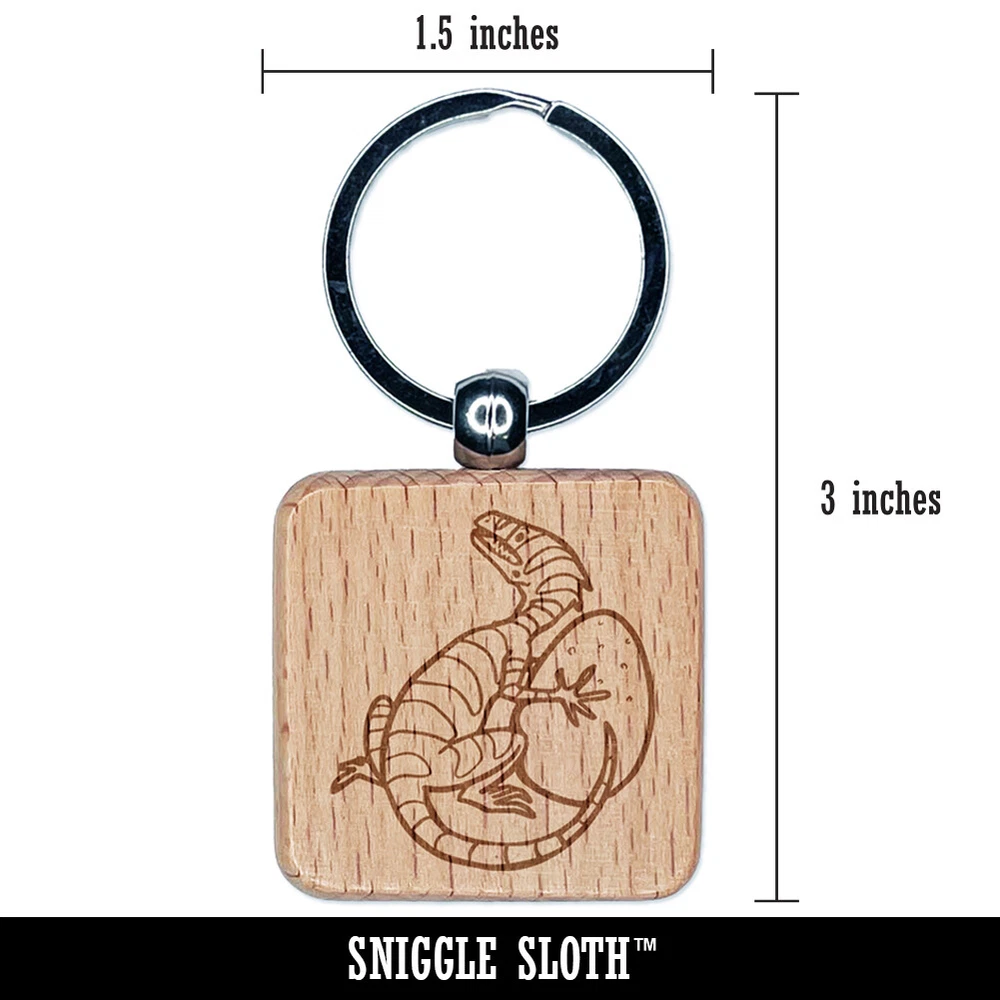 Small Dinosaur with Egg Engraved Wood Square Keychain Tag Charm