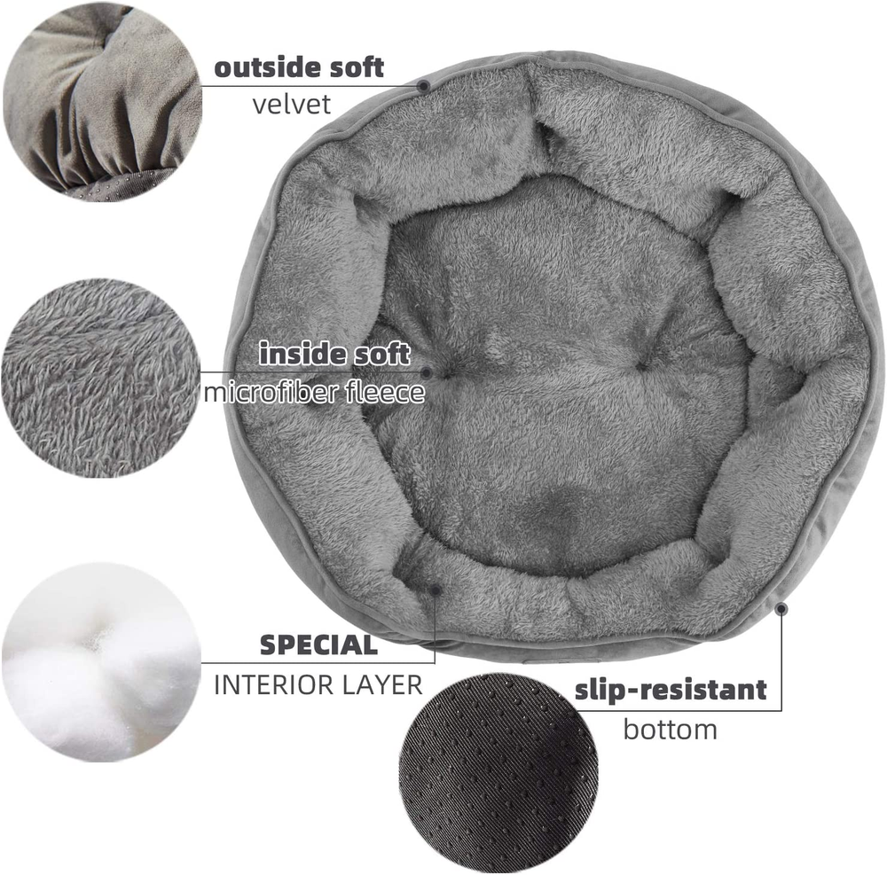 Soft and Cozy: The bed is made of soft Sherpa fleece, ensuring your furry friend is surrounded by softness. Your pet will be free to step on and lie down and fall in love with it. It can help your pet calm down faster and get a restful sleep Comfortable: Our pet bed can not only provide a soft and comfortable bed, but also become your lovely home decoration. The round design creates a sense of security and provide head and neck support Non Slip Bottom: Dotted with flat oxford bottom helps keep the bed in place on smooth surfaces no matter how much your pet moves around Machine Washable: Easy wash and care, wash the entire bed on the gentle cycle with cold water and tumble dry in low heat Size Chart: 20" pet bed is recommended for small to medium dogs or cats of any ages. Please measure your pet to ensure sizing is accurate Product description Asvin Pet bed covered in faux sherpa fleece and corduroy.Effectively retains and radiates your pet’s body heat. Keep your pet safe and warm without electricity or cords The pet bed is convenient for you and pets to hang out anywhere