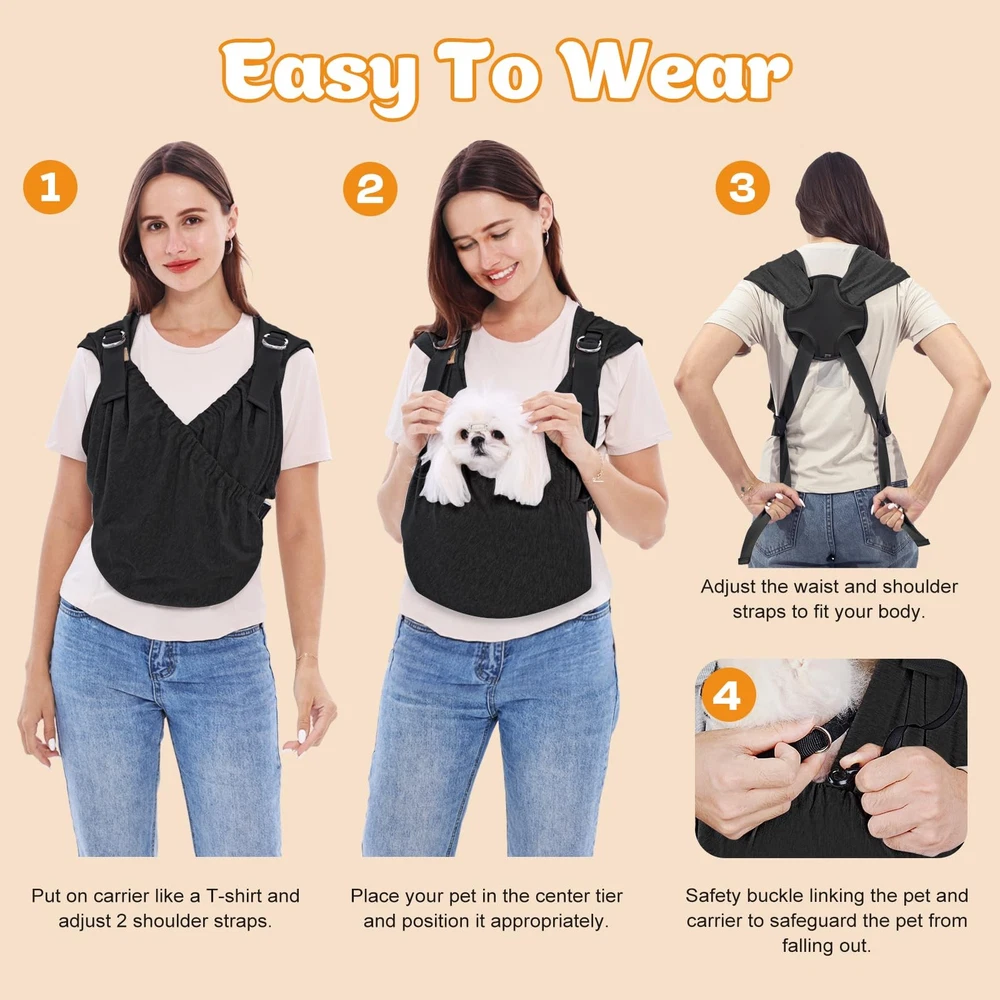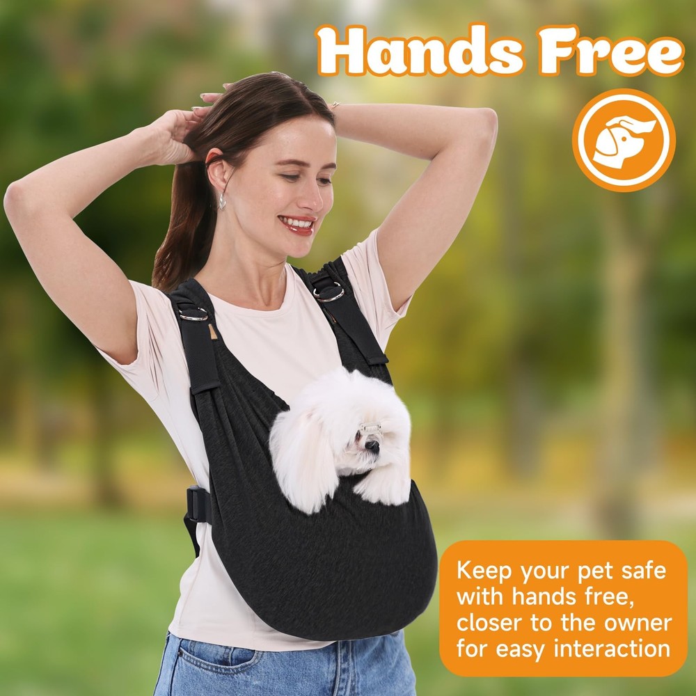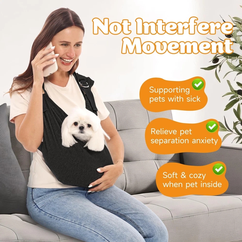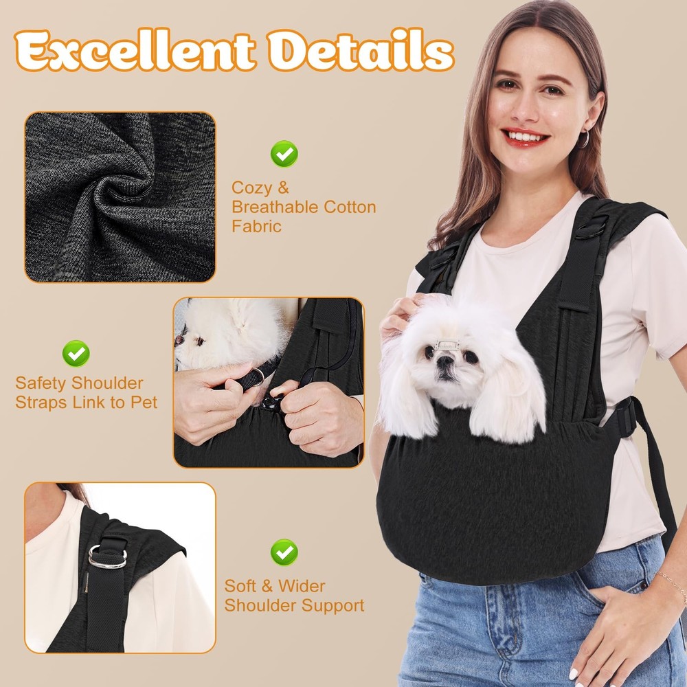 Experience ultimate freedom with our cat holder! Dual wide, adjustable straps distribute weight evenly, reducing neck/back strain by 3D while carrying pets up to 15 lbs. Made from soft 100% cotton, this hands-free puppy sling carrier lets you hike, shop, work, or relax with your pup snugly secured against your chest, and front-facing design eases anxiety with constant cuddles. Perfect for travel, vet visits, or daily bonding—turn every moment into an adventure together! Ditch Neck Aches and Back Stress: dog sling for small dogs features dual wide, adjustable shoulder straps that distribute weight evenly across your upper body. Unlike single-strap carriers, this puppy carrier for small dogs 0-15 lbs reduces pressure by 300% on your neck, shoulders, and spine. this ergonomic dog carrying sling cradles your pet close without sacrificing your comfort. Premium Safety & Comfort: Crafted from plush, breathable 95% cotton, this front dog carrier feels heavenly against fur and skin. The game-changer? A built-in hands-free Yorkie carrier clip connects directly to your pet’s harness (via D-ring) for anti-fall security – no wiggling escapes! As a trusted pet sling carrier for cats and dogs, it features reinforced stitching, easy-adjust buckles. Safety never felt so snuggly. Unstoppable Freedom, Anywhere You Go: This dog chest carrier adapts to your daily rhythm: hike trails hands-free, breeze through vet visits, tidy up at home , binge-watch shows , or scroll your phone effortlessly. Designed as a secure pet carrier for small dogs and even compact cats (it doubles as a cat front carrier!), it keeps your buddy safe while you conquer errands, travel, or cozy couch moments. No task is off-limits! Heart-to-Heart to Your Pet: These front facing dog carrier lets anxious pets see and nuzzle you while exploring, easing separation stress with instant affection. These front dog carriers for small dogs foster closeness through shared views and touch – stroke their head or offer treats mid-adventure. Ideal for nervous rescues or velcro pups, it builds confidence through constant contact. Reclaim Your Hands: Our dog holder for chest liberates your arms so you can sip coffee, grocery shop, type emails, or garden while keeping pets snug against you. The cat chest carrier design anchors your pet securely at heart level, eliminating constant bending or awkward holding.