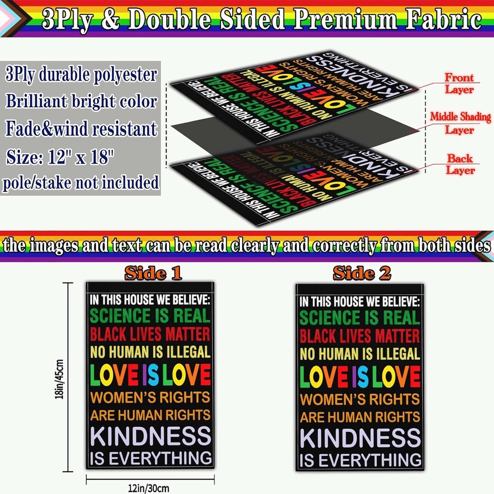 Free eBay listing template designed by dewiso.com NASIAN Small Gay Pride Garden Flag in This House We Believe Yard Sign Garden Flags for Outside 12x18 Inch Double Sided Black Lives Matter Love is Love Flag Outdoor Decorations FREE AND FAST SHIPPING! About this item Gay Pride Month Decorations Outdoor: Welcome guests to your home with funny pride yard garden signs flags for outside, you can hang straight small pride garden flag on the wall, fly it at your front door or in your backyard. This pride rainbow flag can be used as all kinds of outdoor pride decorations flag, such as kindness garden flag, equality flag, peace love sign garden flag, hate has no home here flag, diversity flag, womens rights flag, lesbian flag, bisexual flag, lgbtq flag, etc. 3 Ply Quality Materials: The small gay trans pride yard signs flags for outside are made of 3ply premium material polyester, tight single row stitching along each side, It has bright and vibrant colors, water-resistant, fade and UV resistant. Double-Sided Print: The size of transgender pride rainbow garden flag is 12x18 Inch, double-sided design, the image and text can be read correctly from both sides. This is a nice little garden flag compatible with standard “garden flag” posts (not included), can be hung/removed easily. Pride in the Yard: Get ready for pride month decorations with our original and unique garden flag, as well as offering a welcome stop to your visitors in a distinctive way! Welcome small gay pride garden flag is an excellent gift for friends, parents, to show love equality and freedom on your home or garden, perfect for patio, lawn, garden, yard, porch, balcony, veranda, indoor outdoor decoration. Enjoy Our Service: We sure you will be delighted with gay rainbow pride garden flag. If you have any problem or suggestion, please contact us. Product We offer a 30-Day Return Policy on items which you are not completely satisfied with. You have the option for a full-refund or an exchange of the item. No returns are available on items shipped outside of the US . Shipping We offer Free Shipping to the US and ship within 2 business days of payment, usually sooner. We use UPS express shipping. That's why your products are usually delivered within 3 days . Contact We try our very best to make sure every customer is completely satisfied. If there's a problem , message us! We're happy to help. 24/7 live chat available.