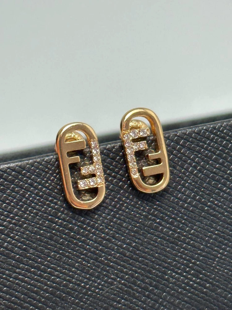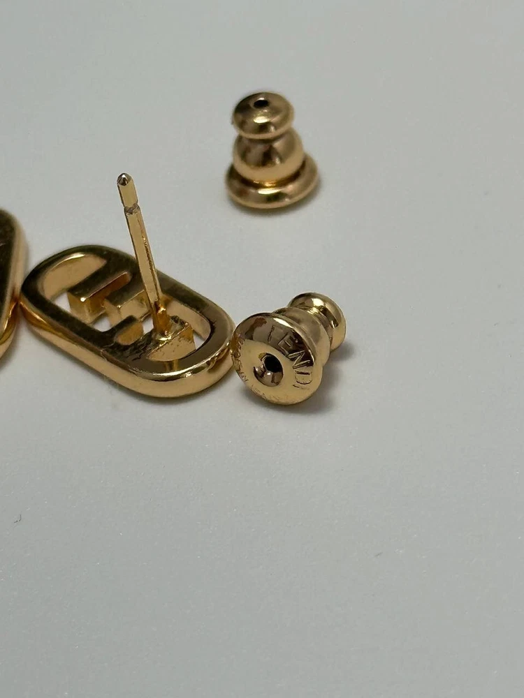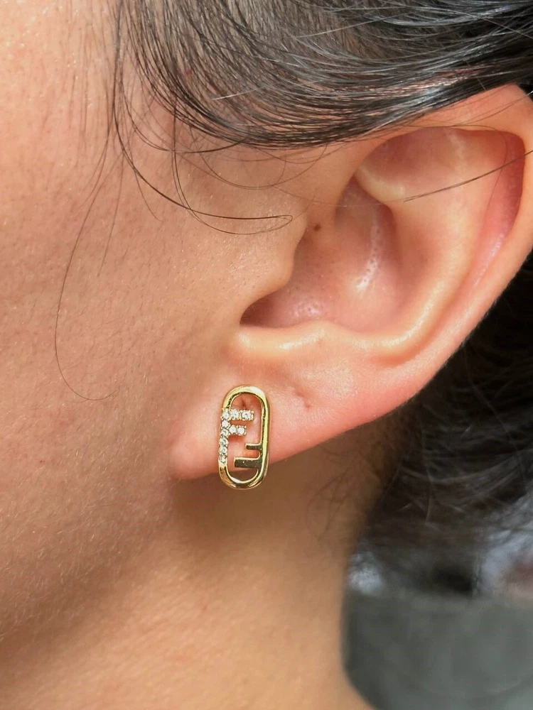 Small Gold Tone Metallic Fashion Signature F Stud Earrings Delicate Studs
