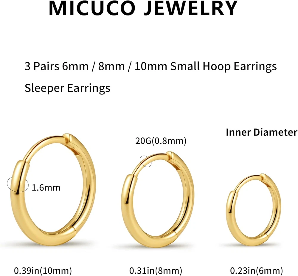 Menu Other Items Feedbacks About Us Contact Us Add To Favorites Small Hoop Earrings for Women Tiny Cartilage Hoop Earrings for Men Helix Daith Tragus Ear Hugging Hoop Earrings Sleeper Hypoallergenic Earrings Product Description micuco Huggie Hoop Earrings for Women Men micuco Small Huggie Hoop Earrings for Women Tiny Cartilage Hoop Earrings for Men Helix Daith Tragus Ear Hugging Hoop Earrings Sleeper Earrings Hypoallergenic The video showcases the product in use. The video guides you through product setup. The video compares multiple products. The video shows the product being unpacked. micuco Huggie Hoop Earrings Surprise for herself or himself or yourself 14K small hoops earrings packed in beautiful jewelry box, absolutely a ideal earring for family or couple on birthday parties, Christmas, Anniversary, Mother’s Day, Congratulation, or any special occasion. Small Hoop Earrings Care Tips micuco Hoop Earrings · Keep your earrings away from chemicals, sweat, bath, crash to keep the lasting shine · Keep it separate in the dainty box we presented micuco Fashion Jewelry Shiny Handcrafted gold huggie hoop earrings, made of superior brass material, last shining for a long time micuco Fashion Jewelry Hypoallergenic 18k gold or white gold plated huggie earrings for women, gentle to sensitive skin micuco Fashion Jewelry Comfortable Lightweight and polished smooth surface earrings, comfortable for everyday wear micuco Fashion Jewelry Timeless jewelry With sturdy construction and fashion design, a classic never goes out of style micuco Fashion Jewelry Fit most occasions Small hoop earrings are fashionable, simple and cute, suitable for most occasions 1 Shiny 2 Hypoallergenic 3 Comfortable 4 Timeless jewelry 5 Fit most occasions Huggie Hoop Earrings Compare to Sturdy Hypoallergenic Lightweight design Everyday Wear gold/silver/black Color Options gold/silver 3" X 3" X 0.6" Exquisite Box 3" X 3" X 0.6" Timeless Jewelry Design Timeless Jewelry Sturdy Hypoallergenic Lightweight design Everyday Wear gold/silver/black Color Options gold/silver 3" X 3" X 0.6" Exquisite Box 3" X 3" X 0.6" Timeless Jewelry Design Timeless Jewelry Sturdy Hypoallergenic Lightweight design Everyday Wear gold/silver/black Color Options gold 3" X 3" X 0.6" Exquisite Box 3" X 3" X 0.6" Timeless Jewelry Design Timeless Jewelry Sturdy Hypoallergenic Lightweight design Everyday Wear gold/silver/black Color Options gold/silver 3" X 3" X 0.6" Exquisite Box 3" X 3" X 0.6" Timeless Jewelry Design Timeless Jewelry Cubic Zirconia Earrings Huggie Hoop Earrings chunky gold hoops Huggie Hoop Earrings Other Details Color Gold / Silver / Black Thickness 1.6mm Inner Diameter 6mm / 0.23in, 8mm / 0.31in, 10mm / 0.39in Post Gauge 20G(0.8mm) Product List Huggie Hoops Earrings*1 + Thank You Card*1 +OPP bag*1 + Bright green jewelry box*1 Package Size 3 × 3 × 0.6 Inch Brand micuco Style Classic and simple style Gemstone No gemstone Item Specification Style A1: 6 8 10mm 14K Gold (3 Pairs) Gem Type No Gemstone Material Brass Setting Post Department Unisex Adult Back finding Hinged Hoop Package Dimensions 3 x 3 x 0.6 inches; 0.81 ounces Dimensions Shipping Returns Additional Info Product Dimensions: 3.0 inches x 3.0 inches x 0.6 inches. Weight: 0.81 oz Fast shipping is very important for us. Our standard shipping service is FREE. Your order will be shipped within 1-3 business days upon full payment received. Most items are delivered within 3-5 business days, however, please allow 3-10 business days. We are shipping only to USA. We only ship to the confirmed Paypal address. We reserve the right to cancel any order for any reason at any time. We are not responsible for undeliverable addresses. We offer a 30 day return policy from checkout winning date. Your satisfaction is guaranteed! If for any reason you are unhappy with your item, just return it within 30 days for a full refund, minus shipping cost. Please contact us prior to initiating a return so that we can issue you a refund authorization. Items defective upon receipt must be packaged in their retail packaging as if new and returned with a detailed description of the problem. Return shipping fees are not refundable. We reserve the right to decline any returns if the above guidelines are not followed. All of our items, unless otherwise stated, will only run on 120 volts. Please check to make sure your country complies with these specifications. If you have a problem or question regarding your transaction please contact us before leaving any type of feedback. We will work with you to resolve any problem you may have.