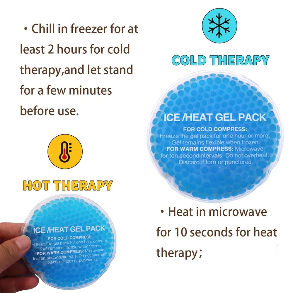 INNOVATIVE TECHNOLOGY, 8 DIFFERENT COLOR - A new type of gel composite beads that can absorb hot and cold temperature evenly, then slowly release stable soothing temperature over a period of time, not just gel, so it can provide heat and cold therapy, remedial, relief pain and treatment for your lower or upper back or shoulders etc. GREAT FOR INJURIES -This 4" round heat and cold pack is ideal for shoulders, upper or lower back, knees, elbows, cervical spine, head, eyes, feet, ACL or MCL tears, fever, plantar Fasciitis etc. Our reusable ice packs are also great for athletes to use for rehab or injury EASY TO USE - Just a simple operation to achieve the effect. Place cold packs in the freezer for 20-30 minutes, or microwave within 12 seconds to reach desired temperature. Our casualty ice packs stay flexible when the ice pack freezes. DURABLE AND REUSABLE: Sturdy airtight small ice packs for injuries are reusable and freeze quickly. The durable PVC surface and medical-grade plastic liner with wide sealing edges prevent leaks. Advanced polyester edge technology makes this a durable and leak-proof nylon bag. They are hand washable with soap and water. REUSABLE AND PORTABLE - With a diameter of 4 inches and a convenient size, it is a must-have first aid tool for home and clinical use when relieving pain and treating injuries with heat or cold therapy (in fact, it can be used for beauty or skin care, sports post-activity), breastfeeding, eye strain, child injuries, headaches, sinus relief. Even quick relief as a child's boo). It can also be easily applied and contoured to any part of the face and body.