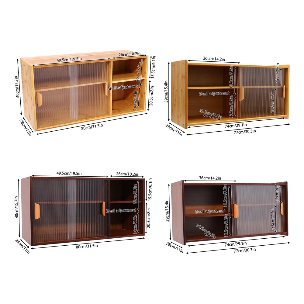 Description Are you still struggling with cluttered cabinets and inadequate kitchen space? Our kitchen pantry cabinet can be a great solution to this problem. It is made of high-quality materials and fine craftsmanship to ensure sturdiness and durability. The transparent door allows you to access the contents of the cabinet easily and conveniently. The two-tier design provides you with enough space to store your items. Such a beautiful and practical cabinet is a good assistant to your kitchen. Small Kitchen Pantry Cabinet Wall Sideboard with Glass Doors Cupboard Food Pan Description Description Are you still struggling with cluttered cabinets and inadequate kitchen space? Our kitchen pantry cabinet can be a great solution to this problem. It is made of high-quality materials and fine craftsmanship to ensure sturdiness and durability. The transparent door allows you to access the contents of the cabinet easily and conveniently. The two-tier design provides you with enough space to store your items. Such a beautiful and practical cabinet is a good assistant to your kitchen. Key Features Build to Last: High-quality bamboo wood and tempered glass make it sturdy and durable, wear-resistant, anti-corrosion, and rust-resistant, ensuring a long service life. Strong Load-bearing Capacity: Its thickened material and strong fixation guarantee a solid structure giving it a maximum load-bearing capacity of about 110.23 lbs to bear kitchen utensils with ease. Neat Storage: The 4 compartments and top space provide you with sufficient space to neatly store bowls, spice bottles, plates, and dishes, making your kitchen tidy. In addition, the height-adjustable and removable internal shelves allow you to assemble freely according to the needs of placing different items for more flexible use. Convenient Life: The transparent glass cabinet door design not only effectively prevents dust but also makes the items inside the cabinet clear at a glance, saving time searching for items. The smooth handle makes you open the door more quickly and conveniently. Flexible and Quick Installation: It supports countertop use and wall mounted installation, and you can choose the appropriate installation method according to your own needs. The necessary accessories, simple screw installation structure, and reserved wall-mounted holes allow you to quickly complete the installation, saving time and effort. Clean with Ease: The painting and polishing processes give it a smooth surface that allows you to easily clean it with just a damp towel and water. Ideal Gift: The pleasing appearance and practical function make this item a great Christmas, New Year, and housewarming gift for your family, friends, and lovers. Available Colors and Sizes: We offer two colors of log color and walnut, and two sizes of cabinets for you to choose from, so you can select the one that suits your needs. Customer Service: We aim to provide quality products and services. If you have any problems, please feel free to contact us. We will reply and solve the problem for you as soon as possible. Details Round Edges: The arc design can effectively care for your skin compared with the traditional square corners. Track Groove: The groove of the mobile cabinet door will become smoother and easier to open with more use. Application It is suitable for kitchen, dining room, or living room, etc. for storing kitchen utensils such as dinner plates, bowls, spices, bakery items, plates, cups, and other daily items. Specification Material: Bamboo Wood, Tempered Glass Color: Log Color/Walnut Style: Modern Shape: Rectangular Assembly Required: Yes Surface Treatment: Painting, Polishing Mounting Type: Wall Mount, Countertop Number of Tiers: 2 Total Load-Bearing Capacity: 50kg/110.23 lbs Adjustable Height Range: 6.5cm/2.56in Package Size: 88*44*13cm/34.65*17.32*5.12in Gross Weight: 12.5kg/27.56 lbs Net Weight: 12kg/26.46 lbs 77cm Cabinet: Cabinet Depth: 23.5cm/9.3in Inner Height: 18.5cm/7.3in, 13.5cm/5.3in, 12cm/4.7in, 19.5cm/7.7in Inner Length: 74cm/29.13in Single Compartment Length: 36cm/14.2in Product Size: 77*28*39cm/30.3*11*15.4in 80cm Cabinet: Inner Height: 14cm/5.5in, 22cm/8.7in (Before Adjustment), 20.5cm/8in, 15.5cm/6.1in (After Adjustment) Large Compartment Length: 49.5cm/19.5in Small Compartment Length: 26cm/10.2in Product Size: 80*28*40cm/31.5*11*15.7in Package Included 1* Kitchen Pantry Cabinet All Accessories for Installation Notes Please note that items such as dishes are not included with this product. Please be careful to install this product on a load-bearing wall, do not install on a cavity wall or plaster wall. Please allow the slight color difference caused by the shooting light and 1-3 cm error due to manual measurement, and make sure you do not mind before ordering. tu1 Payment Delivery details Terms of sales About us Contact us Payment We accept ebay payment 。 Fees such as import duties, taxes are not included in the item price or shipping costs. These charges are the buyer's responsibility. Delivery details Shipping: 2-9 working days to: USA Terms of sales We maintain high standards of excellence and strive for hundred percent customer satisfaction. Feedback is very important to us. We hope that you contact us immediately before you give neutral or negative feedback, so that we can address your concerns. It is impossible to address issues if we do not know about them! About us Your satis faction is our ultimate goal. We work hard to earn your trust and future business. Our certified technicians have tested each item before shipping. The unit comes with 1 year limited warranty on all manufacturing defects. a) If you receive a defective item, you may return it or ask for a discount. Please contact us within 14 days after you receive the package. b) What you returned must be intact and in its original packaging as re? u. Customer is responsible for shipping costs of the returned item. c) We will cover the cost of shipping back t with the shipping rat