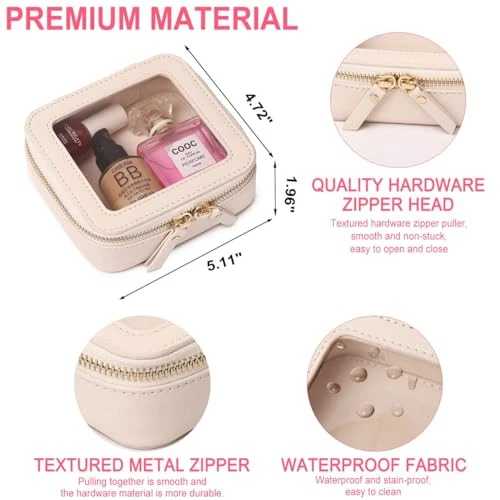 30 Days Return Policy Fast Delivery Trusted seller Small Makeup Bag Mini Clear Cosmetic Makeup Case & Toiletry Bag with Zipper Women's Purse Organizer & Car Essentials (Beige, MINI) Product Description [MINI size] : Our clear small makeup bag measures 5.11" * 4.72" * 1.96" (13 * 12 * 5 cm), making it perfect for daily or travel use. [High-quality material] : Made from durable and soft Faux Leather material inside and outside, this clear mini cosmetic pouch is easy to clean with a damp cloth or wet tissue. [Versatile and organized] : Designed with a boxy shape, our purse organizer is ideal for storing makeup foundations, skincare products, and other items like cables, and chargers. [Clear Windows Design] : Travel with ease as our toiletry bag is TSA compliant. The transparent panel allow you to easily see and access your belongings, and the metal zipper ensures durability and smooth opening and closing. [Combination Use]: Our clear makeup bags come in different sizes and are suitable for different items. You can use makeup bags of different sizes alone or in combination to meet your different needs in daily life or travel. Shipping Returns Payment Shipping Shipping is FREE to all addresses other than APO/PO boxes in the lower 48 states. All our stock ships from US-based warehouses. Shipped via USPS or UPS (depending on location and package weight) Unless stated otherwise, all orders will ship within 24-72 hours of your payment being processed. Check our feedback to see the great reviews of FAST shipping we offer. Returns As our valued customer, we will do our best to make sure the product you receive arrives to you on time and as expected. If you are not satisfied with your purchase, please contact us within 30 days of receiving your order to process a return. Payment We currently accept payment via eBay managed payments only. Once payment is cleared, we will dispatch your shipment within 1-3 business days. Please refer to the "Shipping" tab for more information regarding shipping speed to your destination.