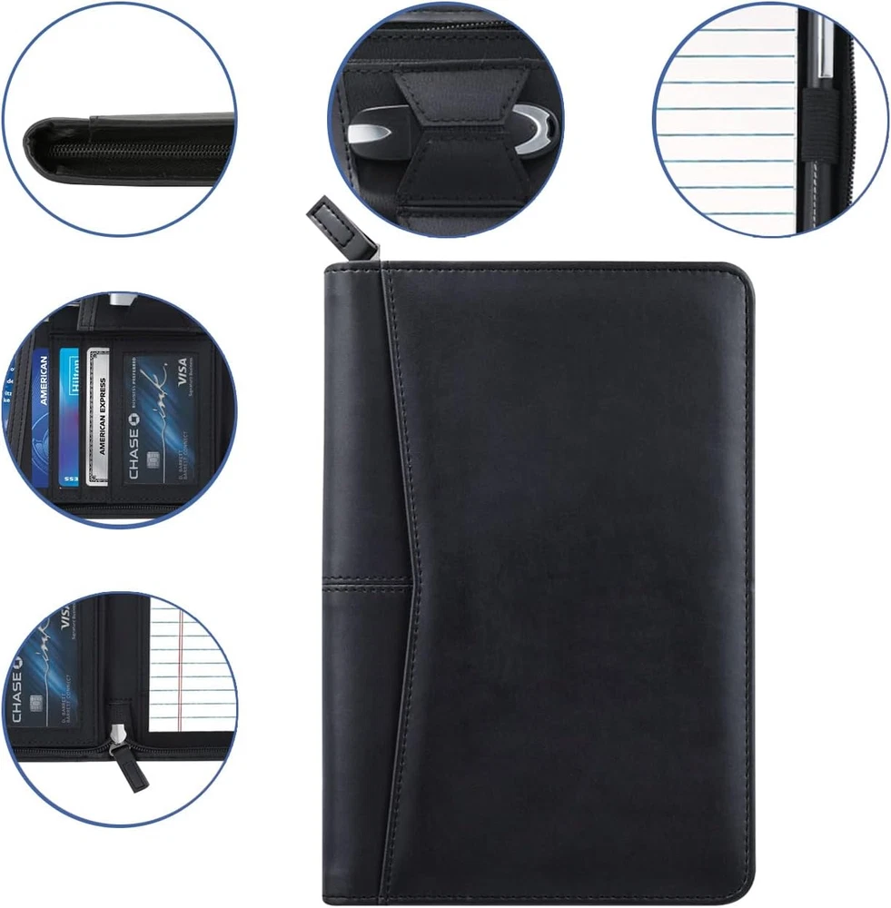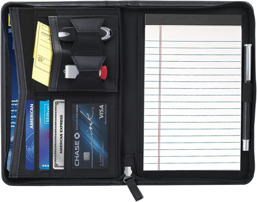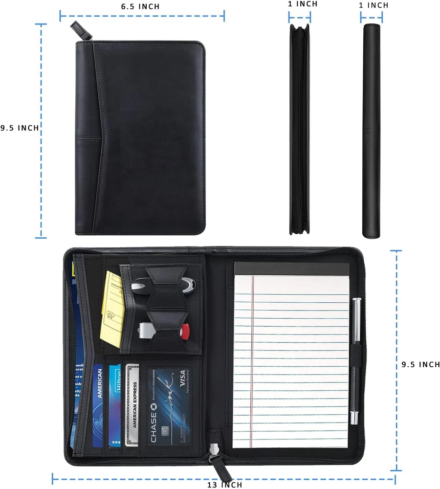 Store New Arrivals Add to Favorite View Feedback Contact Small Portfolio Organizer, A5 Zippered Business Portfolio, Junior Padfolio Folder Binder for Women & Men, 5 X 8 Writing Pad Included, Black Description Item model number Gorbado-PF-SI-02-FBA Number of Items 1 Color Black Brand Gorbado Manufacturer Part Number Gorbado-PF-SI-02-FBA Item Weight 8.5 ounces Product Dimensions 9.5 x 6.5 x 1 inches Manufacturer Gorbado Innovative Design: The Junior Padfolio Portfolio Case is designed with 5 x 8 Writing Pad, a document sleeve, a receipt pocket, 6 card slots, an elastic pencil holder(Pen NOT included). and an outside pocket. Durable and Versatile: Portfolio binder for Women is handmade with premium synthetic leather(NOT real leather!), Zippered closure. Size is 9.5" H x 6.5" W inches, and the Padfolio Portfolio fits for A5/letter size paper. Organized and Efficient: Various inside pockets and slots capable of holding business cards, ID cards,documents, iPad & phone pouch,and a pen holder,make every thing organized and professional, make your work, study ,interview or conference more efficient. Travel friendly: This small padfolio binder is lightweight and compact and it is easily fits into briefcares and bags. Making it the perfect accesorry for on the go professionals. Ultimate Satisfaction : Your satisfaction is our Mission. Please feel free to contact us if any problems, our customer service team will reply to you at the first time. Size: 9.5 x 6.5 x 1 inch (Small) Gorbado padfolio portfolio binder is crafted with premium synthetic leather with a fine texture and a wonderful touch notepad, which facilitate your daily use and business travels. Product Features: Color: Black Material: Premium synthetic leather(NOT real leather!) Portfolio Dimension: 9.5 x 6.5 x 1 inches Writing Pad Dimension :5 x 8 inches Item Weight: 0.52 LB Includes: A5 gusseted media pocket Letter-sized 30-page lined writing pad Mesh ID window USB holder Business card holder Flash drive holder ABOUT US We offer the best prices around on high quality products. Our E-store includes media such as books, movies, music and games while offering electronics, toys, sporting apparel, clothing, tools, general home, garden items and more. SHIPPING We are always working hard to ensure your package arrives as soon as possible. Please understand that some factors like weather, high postal traffic, and the performance of shipping companies are outside of our control. We offer free shipping to the lower 48 states and ship within 2 business days of payment, usually sooner. We do not accept P.O. Boxes. Please provide a physical address. RETURNS We offer a 30-Day Return Policy on items which you are not completely satisfied with. You have the option for a full-refund or an exchange of the item. No returns are available on items shipped outside of the USA. PAYMENT We accept PayPal. CONTACT US This page content is yet to come Please ad us to your favorite seller and visit again later Thank You CUSTOMER SATISFACTION We try our very best to make sure every customer is completely satisfied. If there's a problem, message us! We're happy to help.