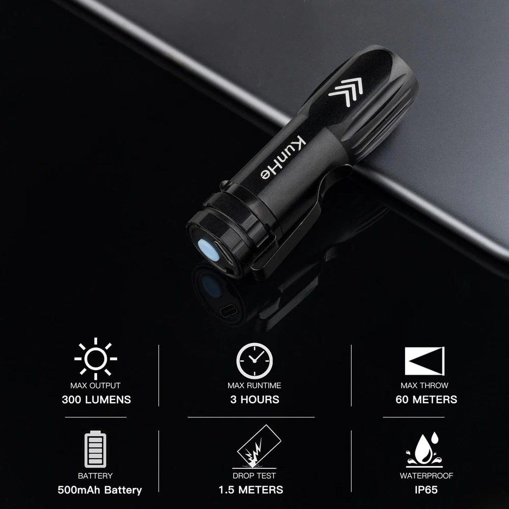 USB-C Rechargeable Flashlights: Equipped 500 mAh rechargeable battery and charged via Type-C cable (included), each small flashlight provides reliable battery life, effectively reducing the need for frequent battery replacements Compact & Portable: Each mini flashlight is 3.7 inches long and weights only 1.5 ounces, making it a perfect fit for pockets, purses, bags or small cases -- ideal for on-the-go illumination Bright & Powerful: Each small rechargeable flashlight offers up to 300-lumens brightness, prividing sufficient visibility for versatile occasions with three modes: hight, mide, and strobe Durable Aluminum Construction: These pocket-sized flashlights are made of premium alumimum alloy, built to withstand various weather conditions and impacts or drops, making them a reliable choice fro daily carry or emergency use Gift Choice: A 5-pack mini flashlights with clips makes an ideal stocking stuffer gift for Christmas, or a great present for Thanksgiving, Halloween, and other occasions