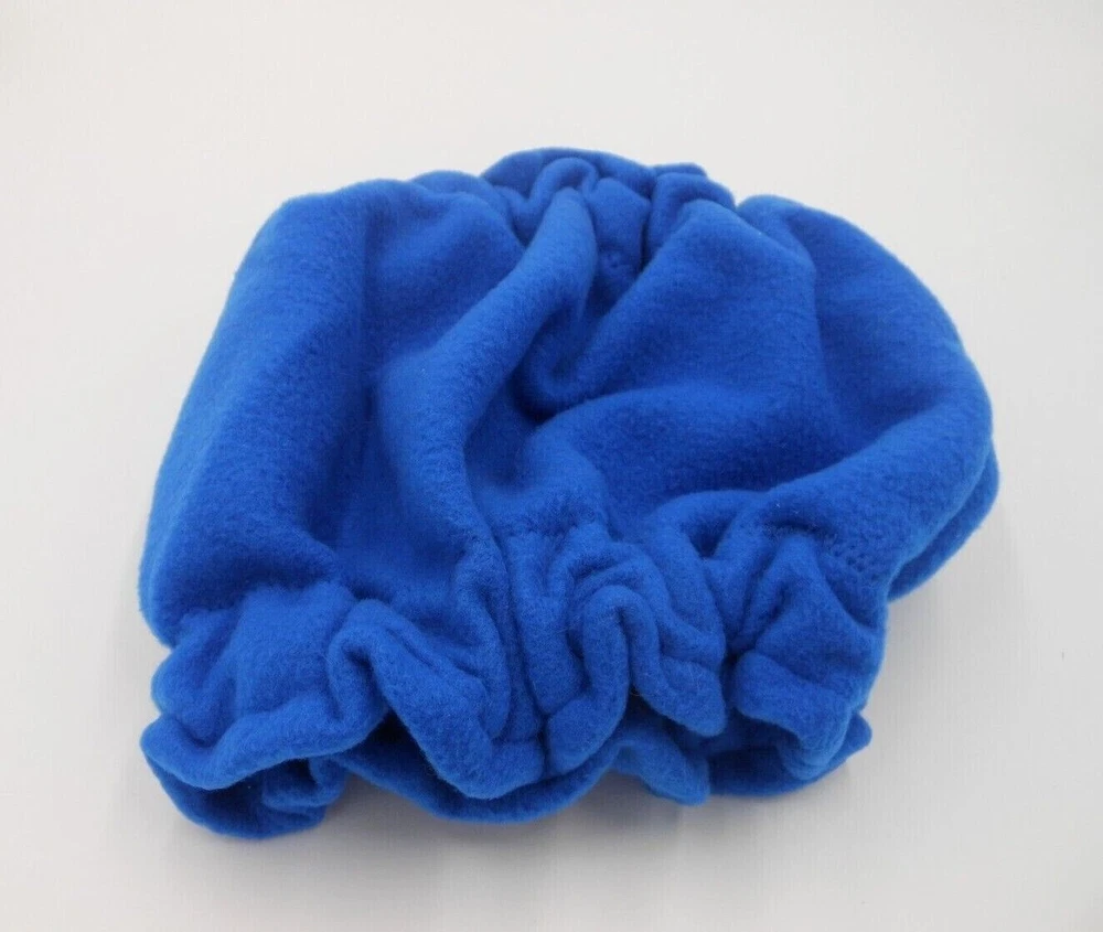 ROYAL blue polar fleece dog snood. Keeps your dogs ears warm and out of the water and food bowl. Size: SMALL PUPPY Handmade in the USA. PURCHASE FOR PUPPY BASSET HOUND AT #15-18 4 months Dogs can vary a lot in size even if the same breed and age. Measure your dog all the way around, right behind their ears or in front of their ears to be sure this is the size needed since dogs of the same breed can vary a lot in size. Example: If your dog measures more than 10", a medium would be a better fit. Snoods have to be somewhat snug to stay on. ♦♦ FEATURES ♦♦ 1. The snood measures approx. 10" in length. Picture of snood laying flat, ends measure approx. 8" across (not stretched). 8-10" stretched 2. It will keep your dogs ears out of their food bowl and keeps them clean for the shows. 3. The snood is constructed out of a 100% polyester polar fleece fabric. 4. Elastic on both ends, all edges overlocked before sewing together to prevent fraying when washed. 5. Machine washable (no bleach) warm water and dryable on low heat. SOLD AS IS. CLEAN ITEM FROM SMOKE/VIRUS FREE HOME. I try to describe my items as best as possible and take the best pictures possible, however if any issues with orders arise feel free to message me and it will be resolved quickly! Always contact your seller before leaving negative feedback. All Sales are final. (a) Unless the item you received is significantly different from the description; or an error occurred on our side. (b) To get a refund (less S&H), please return your purchase in its original package as received. (c) The cost to return an item is the buyer's responsibility. We do not offer free return. (d) S&H fees for the initial purchase are not refundable. If you ever encounter any problem with your purchase, please let us know within 14 days upon receipt of the package. Thank you for shopping! ENJOY.
