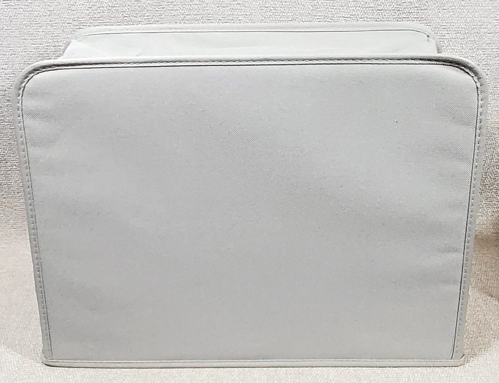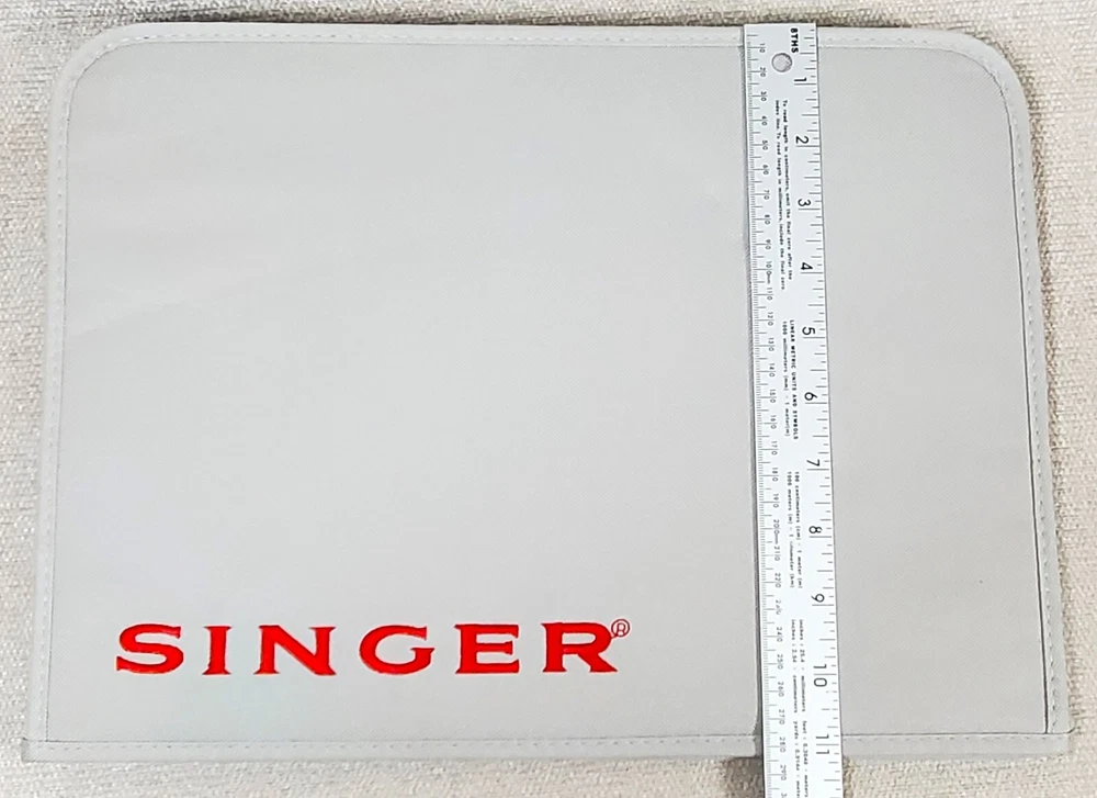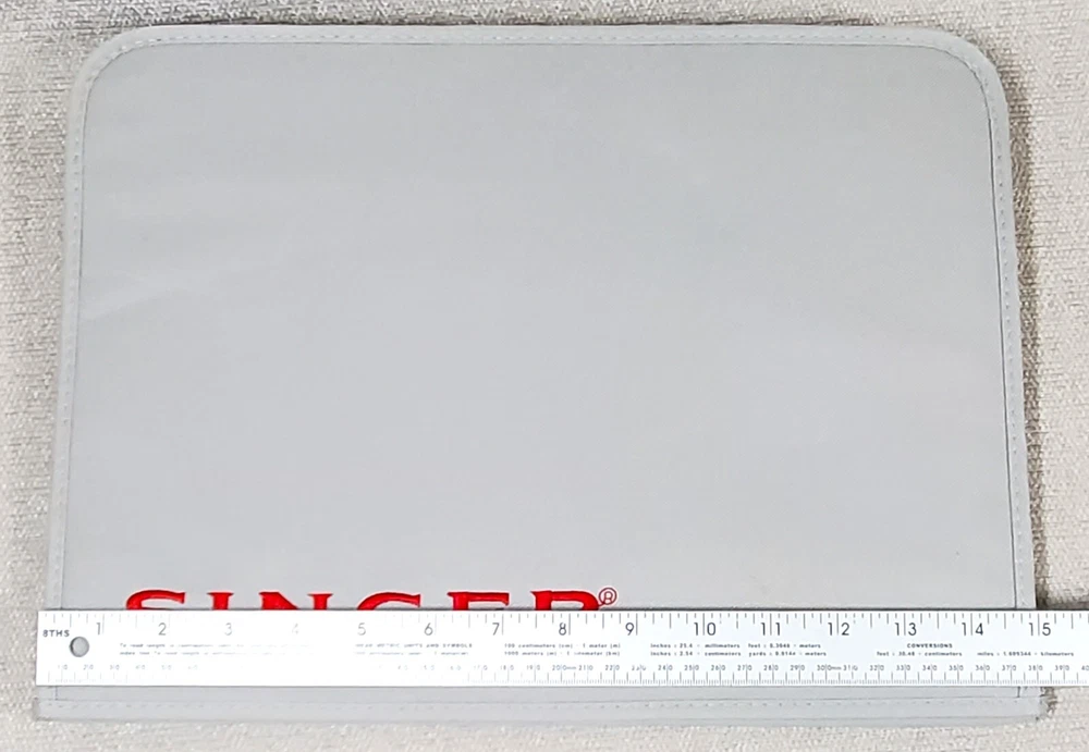 SINGER Small Sewing Machine Dust Cover 15" x 11" x 6" Semi-Stiff Excellent Unused Condition For your consideration is a small SINGER Sewing Machine Dust COVER. It is 15" wide x 11" high x approx. 6" deep. It is semi-rigid - the front and back are stiff; the top and sides "fold" to make it flat. Gray in color, slightly darker than it appears in the photos. I purchased this at an estate sale to see if it would fit one of my sewing machines, but it did not. The cover is pre-owned but appears unused. In excellent condition. Flaw: there is a tiny spot on the right side of the side panel, as shown in the last two photos. I don't know what it is from. I tried to remove it with mild detergent but it didn't come out. From a smoke-free home. Buyer pays exact calculated shipping within the U.S. (no handling fee). The package will weigh approx. 2 lbs. I am happy to combine shipping on multiple items purchased, if paid for with ONE payment. Thank you for looking!