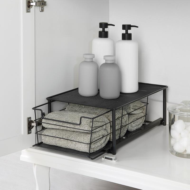 You may also like Folding Luggage Cart Transport Moving Cart Hand Truck, Black, 75lbs Capacity 33.06 USD Free shipping 3-Burner Gas Stove for Big Outdoor Cooking 30000 BTU 608 Sq in Cooking Space Red 448.86 USD Free shipping Ultra Light Flexible Quarter Inch 100 Ft Air Hose Perfect Roofers Contractors 49.05 USD Free shipping Heavy Duty Carport Canopy Extra Large Portable Car Tent Garage W/Roll-Up Windows 329.17 USD Free shipping Commercial Lightweight Backpack Baggged Vacuum Cleaner for Carpet & Hard Floors 421.94 USD Free shipping Beveled Mirror Medicine Cabinet 12 X 36 In Frameless Durable Plastic Adjustable 76.12 USD Free shipping Rolling Sewing Machine Storage Transport Tote Triangles W/ Wheels Clear Pockets 63.84 USD Free shipping 12V UltraSafe Portable Lithium Jump Starter Car Battery Booster Pack Powerbank 432.83 USD Free shipping Professional Compact 120V Bench Grinder Sharpenern Garage All Chainsaw Chains 282.14 USD Free shipping Bread Box Steel Fingerprint Proof 21 X 11 X 8 In Handy Large Capacity Durable 77.75 USD Free shipping Grind Rail 55 In Long 3 Step Adjustable Height Extra Stability Practice Skate 73.15 USD Free shipping Strong Suction Stick Vacuum Cleaner Lightweight Corded Hardfloor Adjustable Tube 51.87 USD Free shipping Keep your bathroom organized with the Mainstays Small Stackable Slide-Out Drawer Organizer. This storage drawer is a perfect way to keep bath and beauty essentials neatly organized. The neutral black color and attractive design makes it perfect for use on countertops, shelves, closets, or under sinks. The stackable design allows for vertical storage, maximizing your storage space. Pair it with Mainstay's large stackable slide-out storage drawer for a custom storage solution. It even includes hardware for under-cabinet mounting. Keep bath and beauty essentials organized with the Mainstays Small Stackable Slide-Out Drawer Organizer. Getting organized is often a matter of finding the right equipment to store your stuff. Mainstays organization and storage products are suitable for use throughout your home. Some of the products in this section are designed for use in a specific area, such as your closets or kitchen, and you can focus on these specific products if you know what you need. If you don't yet know what organization and storage products might solve your problems, scroll through the product listings in this section to get inspiration. Product descriptions and names are helpful guides to consider as you browse. Mainstays Small Stackable Slide-Out Drawer Organizer, Black, 10 in x 15 in x 5. 5 in Perfectly sized to organize hair tools and extra bathroom essentials Sliding basket for ease of access Modern black finish Multiple organizers can be used as a vertical storage solution Compatible with Mainstays Large Stackable Slide-Out Drawer Durable, rust-resistant steel construction and padded feet Hardware included for under-cabinet mounting, if desired 17 Qt Plastic Stackable Closet Storage Box Snap Tight Lid Keep Dust Clear Set 6 34.06 USD Free shipping 28 Quart Storage Box Container Bins Plastic Clear View Stackable W/ Lid 6 Pieces 47.71 USD Free shipping Kitchen Enamel Dinnerware Set Steel Spoons Mugs Bowls Plates Camping 24 Piece US 53.16 USD Free shipping 6 Speed Performance Hand Mixer Includes Case 5 Attachments Stainless Steel New 35.86 USD Free shipping Kids Modern Classic Video Rocker Gaming Chair Faux Leather Mesh Comfortable New 58.9 USD Free shipping Ultra Light Flexible Quarter Inch 100 Ft Air Hose Perfect Roofers Contractors 49.05 USD Free shipping 7 Qt Manual Slow Cooker Non-stick Removable Cooking Surface Mperature Control 42.3 USD Free shipping Classic Video Rocker Gaming Chair Kids Teens Faux Leather Mesh Light Weight Blue 58.9 USD Free shipping Side Storage Student Desk Give Your Student Perfect Spot Finish Homework White 62.84 USD Free shipping Hand Held Shower Head Powerpulse Massage 7 Spray Modes Anti Clog Nozzles Chrome 52.52 USD Free shipping 15-Piece MM Combination Wrench Set W/ Tool Pouch Chrome Finish Rust Resistant 46.52 USD Free shipping Folding Luggage Cart Transport Moving Cart Hand Truck, Black, 75lbs Capacity 33.06 USD Free shipping