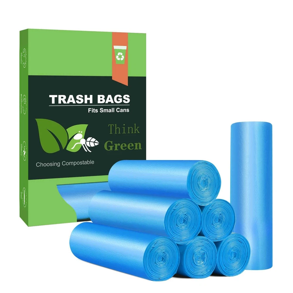 ✔【Compostable Trash Bags】Our small trash bags are all made of plastarch material(PSM) with the U.S. standard ASTM D6866 PSM based on natural renewable plant starch extract, It not only has excellent leakage resistance and toughness. Not suitable for backyard composting, but degradable under industrial conditions without causing damage to the environment. ✔【Box Dispenser Design】Makes it easy to grab trash can liner from receptacle at a time and storing these small bathroom trash bags, Is shiny blue in color, looks clean and refine, Perfect for office, kitchen, bathroom, bedroom, living room, baby diapers, car, cleaning pets’ litter and trash recycling. ✔【Fit Most of Small Trash Cans】The dimension((L*W) of the liner is 21.6”*18.5”, It is bigger than nomal 4 gallon trash bags. With the bottom octagonal design, It can allow for more rubbish than the ordinary 4 gallon garbage bags, perfectly fits small round bins (Diameter≤12inch,Heigh≤16inch) or rectangular waste cans(Length≤9inch,Heigh≤16inch). ✔【Recycled Small Bathroom Bag】We promote compostable garbage bags. These are unscented, Non-and pure. It controls the odor very well, and help us identify the contents of the garbage so that sorting and recycling of it better. ✔【Strong & Sturdy Garbage Bags】These mini trash bags 4 gal are packed in a very delicate and light way that is convenient to or carry. In terms of detail, The breakpoint design makes it easy to separate them and avoid the trouble of tearing. Maximum weight of 11 Lb (5 Kg).