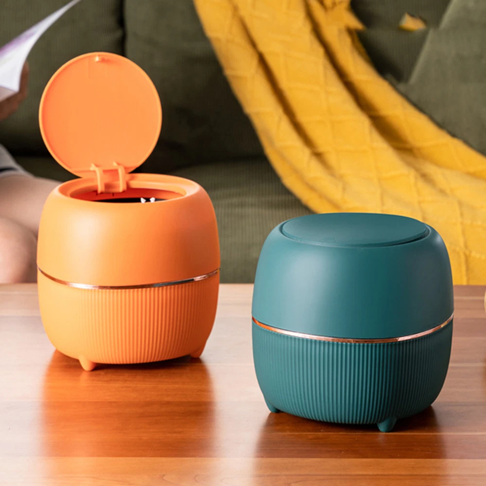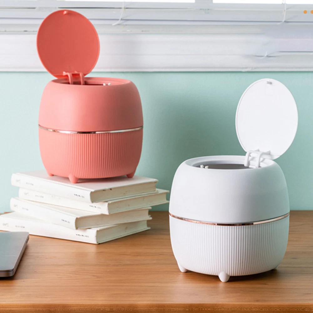 Small Trash Can Desktop Mini Waste Bin with Lid Desk Organizer Pen Holder