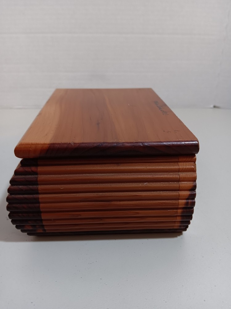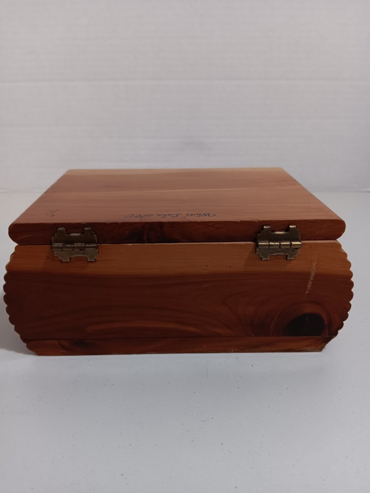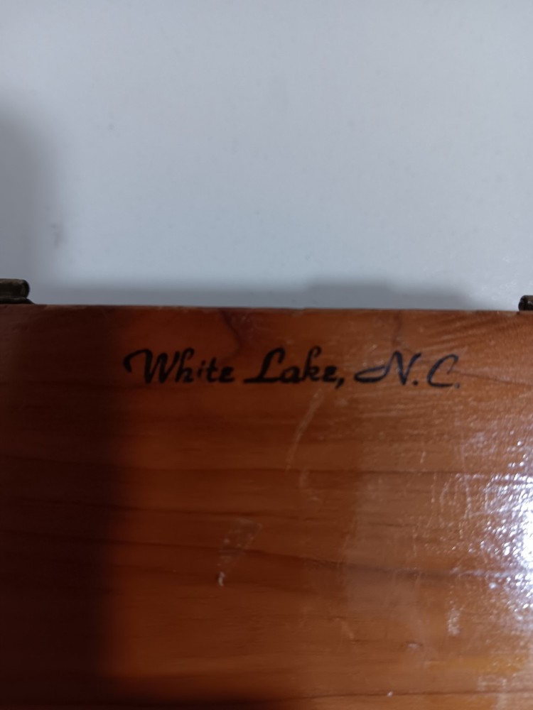 Small Wooden Trinket/Jewelry Box with Hinged Lid Has writing that says "White lake North Carolina" on lid (7d)