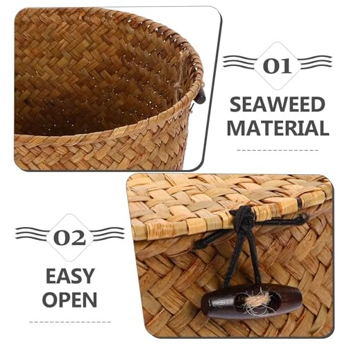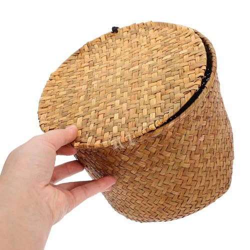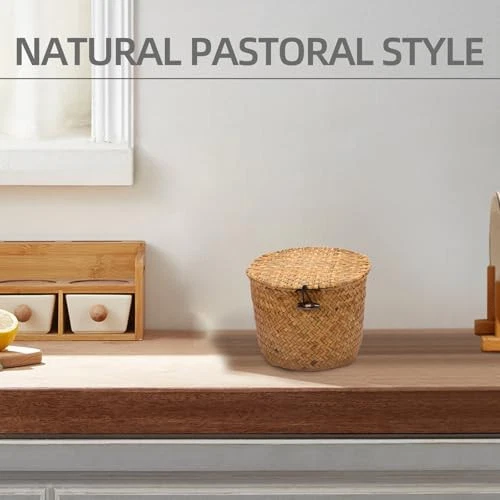 Small Woven Basket with Lid Round Stackable Wicker Shelf Baskets Bin