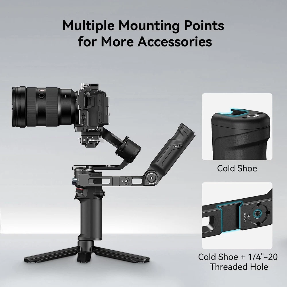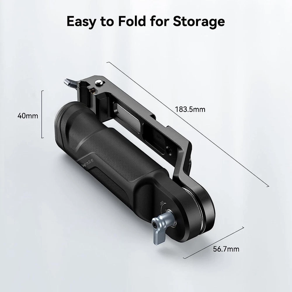 1. Designed for DJI RS 3 Mini, no shift of center of gravity; 2. Compact, weighs only 220g, easy to carry around; 3. Multiple mounting points: 1/4 threaded holes and cold shoe mounts; 4. Angle adjustable: tilts 0-180 degrees via a ratchet knob, easily folded for storage. SmallRig Plastic Lightweight Adjustable Handle Sling Handgrip for DJI RS 3 mini About this item 【For DJI RS 3 Mini】 SmallRig Sling Handle 4197 is specially designed for DJI RS 3 mini gimbal. This briefcase handle is designed to reduce arm fatigue during low angle shooting and mounted it onto RS 3 mini would not shift the center gravity. 【180 Degree Adjustment】 Offering 180° adjustment via a built-in rosette joint, this ergonomic handgrip gives you the flexibility you need to shoot from a variety of angles, and it helps take the load off your arm. This gimbal handle for DJI Ronin RS 3 mini has a pretty good and sturdy grip. 【Portable and Compact】 The compact handgrip weighs only 220g but can bear as much as 6kg. And low-angle shooting makes the arm easier and the camera moves more freely. It's really compatible gimbal looking for extra stability or to lower it down to underslung / briefcase mode. 【Quick Release Clamp】 The grip mounts onto the gimbal using a NATO clamp. Also, the quick release NATO rail features an anti-removal stud to ensure a safe and quick operation. The delicate and compact handgrip works perfectly with the gimbal which is a comfortable accessories for DJI RS 3 mini. 【Multiple Mounting Points】 Multiple 1/4"-20 threads are built-in on the handgrip which allows for mounting Magic Arm. With two cold shoe mounts on top and side of the handgrip, it can be mounted with Monitor Mount 2905B, wireless receiver, video transmission and other equipment. SmallRig Sling Handle for DJI RS 3 Mini 4197 is designed to reduce arm fatigue during low-angle shooting and offer plentiful accessory mounting options. Mounting it onto RS 3 Mini would not shift the center gravity. The compact handgrip weighs only 198g but can bear as much as 6kg. It quickly locks the gimbal via a NATO clamp, which features an anti-drop button to ensure safety. Built-in 1/4”-20 threads and two cold shoe mounts on top and side support Monitor Mount 2905B, sound receiver, image transmission system. The rig can also tilt 180° via a ratchet knob for easy storage. Overall, the delicate and compact handgrip works perfectly with the gimbal. Designer: Yetta White Note: Load capacity: 6kg Compatibility: DJI RS 3 Mini In the Box: 1 x Sling Handle Specifications Product Dimensions: 183.5 x 56.7 x 40mm Package Dimensions: 220 x 113.5 x 41mm Product Weight: 198±5g Package Weight: 252 ±5g Material(s): Aluminum Alloy, Plastic