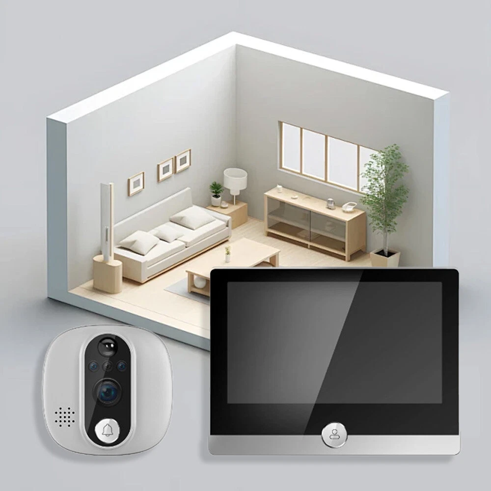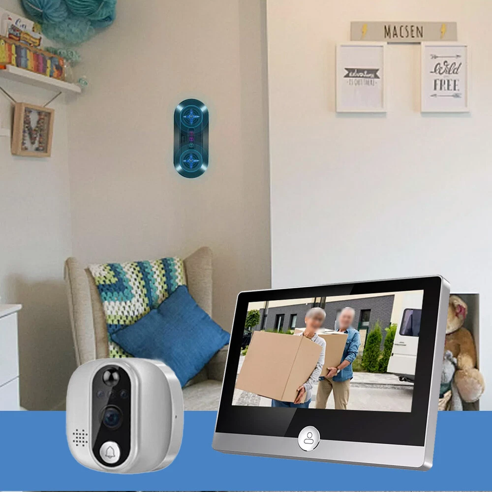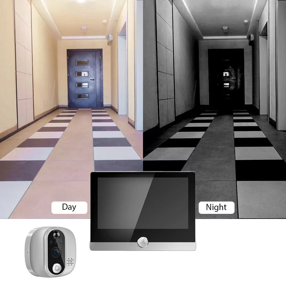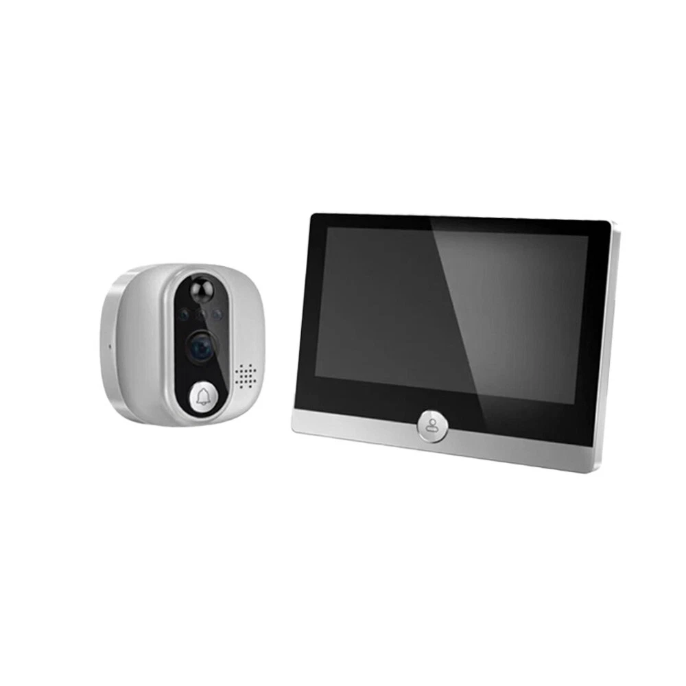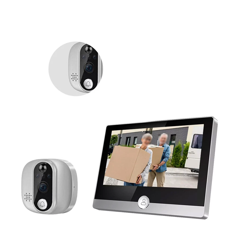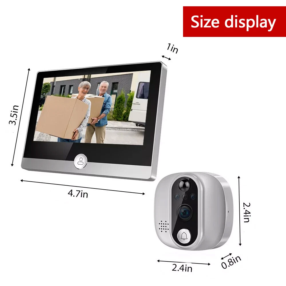 Type: WiFi Video Doorbell Peephole Camera Color Mode: Color Day/B&W Night Smart Home Protocol: Infrared Models: WiFi Peephole Viewer Video Doorbell Display Technology: LCD gtin13: Does Not Apply Location: Indoor Only storage: Support 32G memory card(maximum)(not included) UPC: Does Not Apply Model: Smart Peephole Camera ASIN: 1WDV95OZVL MPN: Does not Apply Support: remotely view, talk, take photos, record videos suitable door holes: within 14-50mm(diameter), 35-120mm(door thickness ) Features: Wi-Fi, Motion Detection, High Definition, 4.3 Inch Color Display, Smart APP Control, Infrared Night Vision & Two-way Audio, Easy to install, built-in rechargeable battery, built-in speaker and microphone, automatically switch, wide angle Types: WiFi Doorbell Peephole Camera with monitor Brand: Unbranded/Generic Maximum Resolution: 1920x1080