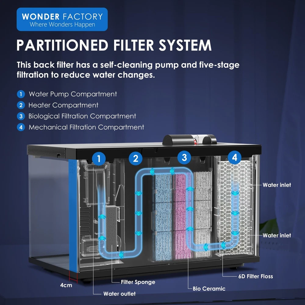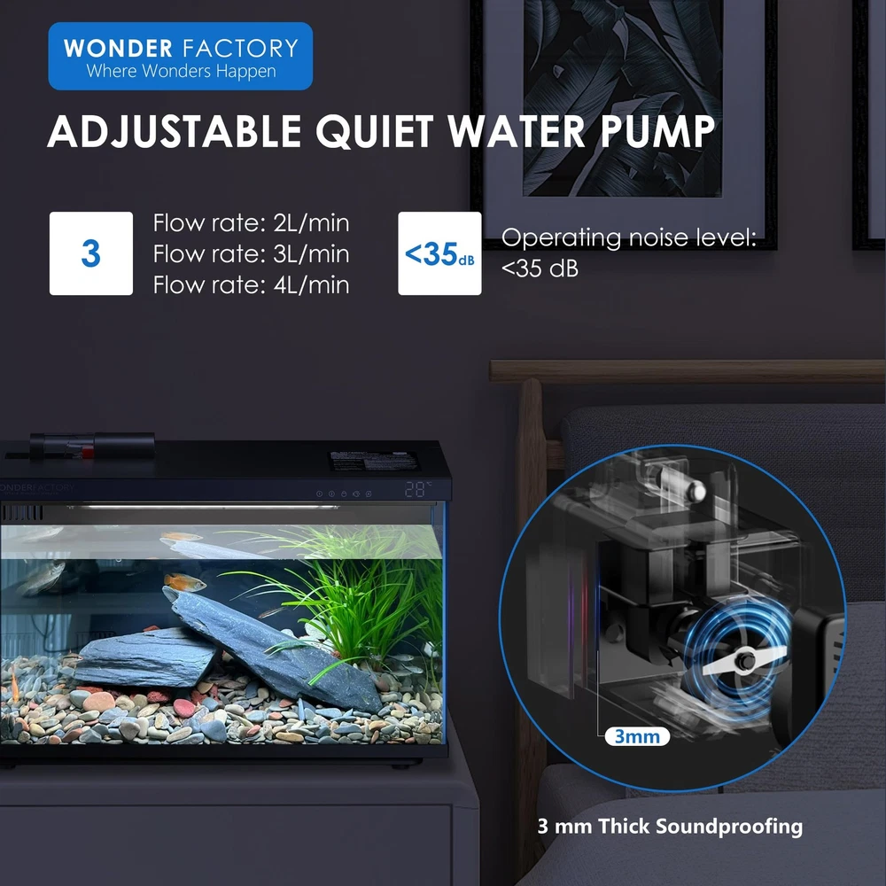 γπππππππ πππ ππ πππ ππππππγhas redesigned traditional aquariums to fix common problems like too many accessories, complicated setup, messy equipment, and needing multiple power plugs. Our modular, all-in-one approach is a big change for the industry. This product includes physical and biological filtration, 7 lighting modes, a slot for a heating rod (sold separately), temperature monitoring, and a three-speed water pump. The tank uses only one power cord, requires no installation, and supports one-touch water changes. This product has sold over 1 million units worldwide. γπππππ ππππ π πππππ π πππππππππ ππππππγThe tank features a self-developed ultra-thin water pump (30% thinner) and is equipped with a 5-layer professional-grade compartmentalized back filtration system. This includes 3 sets of nitrifying bacteria cubes, pump filter cotton, and 6d physical filter cotton. Additionally, we have included our patented anti-clogging pump, which effectively performs physical filtration and bacterial cultivation. The 5-gallon aquarium pump operates at a noise level of β€35dB, providing a quiet environment for your fish. The side-suction pump allows the tank water to be discharged through the pump module's drainage hole with one touch. γππ πππ πππππ/πππ πππππππγfish tanks use five-line gold crystal UHA-grade glass, which is a higher quality and more transparent glass material compared to the float glass commonly used in current high-end fish tanks. This type of glass, often used in the automotive industry, is more expensive. It has a thickness of 6 millimeters and a light transmittance of up to 92%, perfectly restoring the underwater ecology. The tank's key functions are displayed digitally, including pump speed, water temperature, and lighting modes. The entire unit features a 16:9 widescreen design, providing a cinematic visual experience. γπππππ πππππππππ π πππππγThis fish tank comes with a patented feeder that allows you to feed the fish by simply pressing a button on the settings page. The electric feeder in the betta tank features a moisture-proof design to ensure fresh food and prevent clogging. One refill can last for up to 3 months. γπ πππ ππππππππ πππ πππππ, π πππππγThe 5-gallon smart fish tank lighting system includes 24 high-CRI LED white light beads (Ra>90) and 16 full-spectrum RGB light beads. This setup provides color rendering close to sunlight and includes seven preset lighting modes: white light mode, flow light mode, night light mode, stream wind mode, South American style mode, daylight mode, and aquatic plant light mode. γππ ππππππππππππ ππππππππ, πππππ ππ πππγThe Smart fish tank requires no installation. Simply unpack, add water, and it's ready to use. This is the perfect aquarium starter kit, an ideal gift for beginners and aquarium enthusiasts. Its moderate size makes it suitable for placement in bedrooms, dining rooms, office desks, living rooms, and children's rooms, serving as a decorative piece in everyday life. γπ ππππππππππ ππππγ The 5-gallon Smart Aquarium is suitable for various live fish, including betta fish, goldfish, zebra fish, goldfish, hermit crabs, devil crabs, micro freshwater shrimp (such as cherry shrimp), African dwarf frogs, snails (like apple snails or mystery snails), and four-eyed fish. γππ πππ-πππππ πππππππγWe promise to provide you with 365 days of warranty support (for vulnerable parts) and 24/7 customer service. As the fish tank is a large item, various issues may arise during transportation, assembly, and use. If any problems occur, please contact us through Amazon platform messages or other means. We will provide you with technical guidance, expert advice, and various customer services to ensure your complete satisfaction with your purchase.