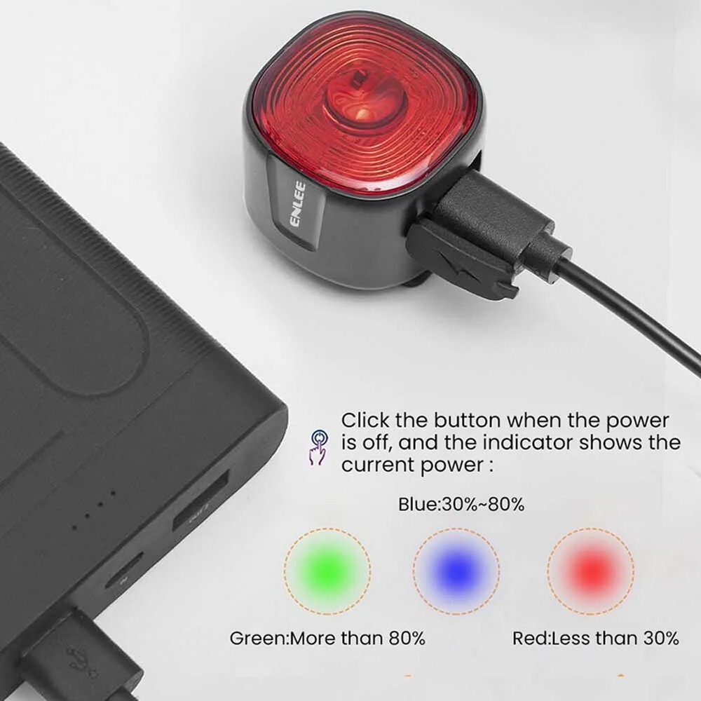 LED Bike Taillight High Brightness USB Rechargeable Bike Safety Rear Lights Waterproof 6 Lighting Modes Night Riding Accessories Feature: 1. Intelligent Light Control: Automatically detect the brightness of the riding environment after the tail light is on for a period of time in the flashing mode, automatically turn off when it is on, automatically turn on when it is dark, and automatically turn off the light after parking in a dark environment for a period of time. 2. Brake Sensing: Built-in high-density speed sensor. When sensing the deceleration of the vehicle body, the red light will highlight for 3 seconds and then return to the current mode, prompting the rear to pay attention to improve safety. 3. High Brightness: High brightness LED lamp beads, high brightness. Three installation methods are applicable to more bicycles. 4. Waterproof: Good sealing, no fear of riding in rainy days. 5. Satisfaction Guarantee: We strive to provide each customer with the highest standard of customer service to ensure you have a pleasant shopping experience. If you have any issues, inquiries or need assistance, please feel free to contact us directly. Specification: Main material: ABS+PC Product color: black Product specification: WT09-ordinary model/WT09S-smart brake model (optional) Product size: about 33x33x30mm/1.29x1.29x1.18inch Net weight of product: about 20g Other parameters: Bead parameters: red LED Beads Light gear: 6, always on and various flashing Charging mode: Type-C USB charging Product battery: 250mAh polymer battery/400mAh polymer battery (included) Endurance: 10H/12H The difference between WT09 ordinary model and WT09S smart brake model: The WT09 ordinary model has no intelligent braking function, just a simple tail lamp; The WT09 ordinary model battery has a capacity of only 250mAh. Warm Tips: By default, the two logo colors are shipped randomly, but generally the WT09 ordinary model logo is white, and the WT09S smart brake model logo is red. Note: Due to the different monitor and light effect, the actual color of the item might be slightly different from the color showed on the pictures. Thank you! Please allow 1-2cm measuring deviation due to manual measurement. 1 x Bicycle tail lamp 1 x Charging cable (black and white random delivery)