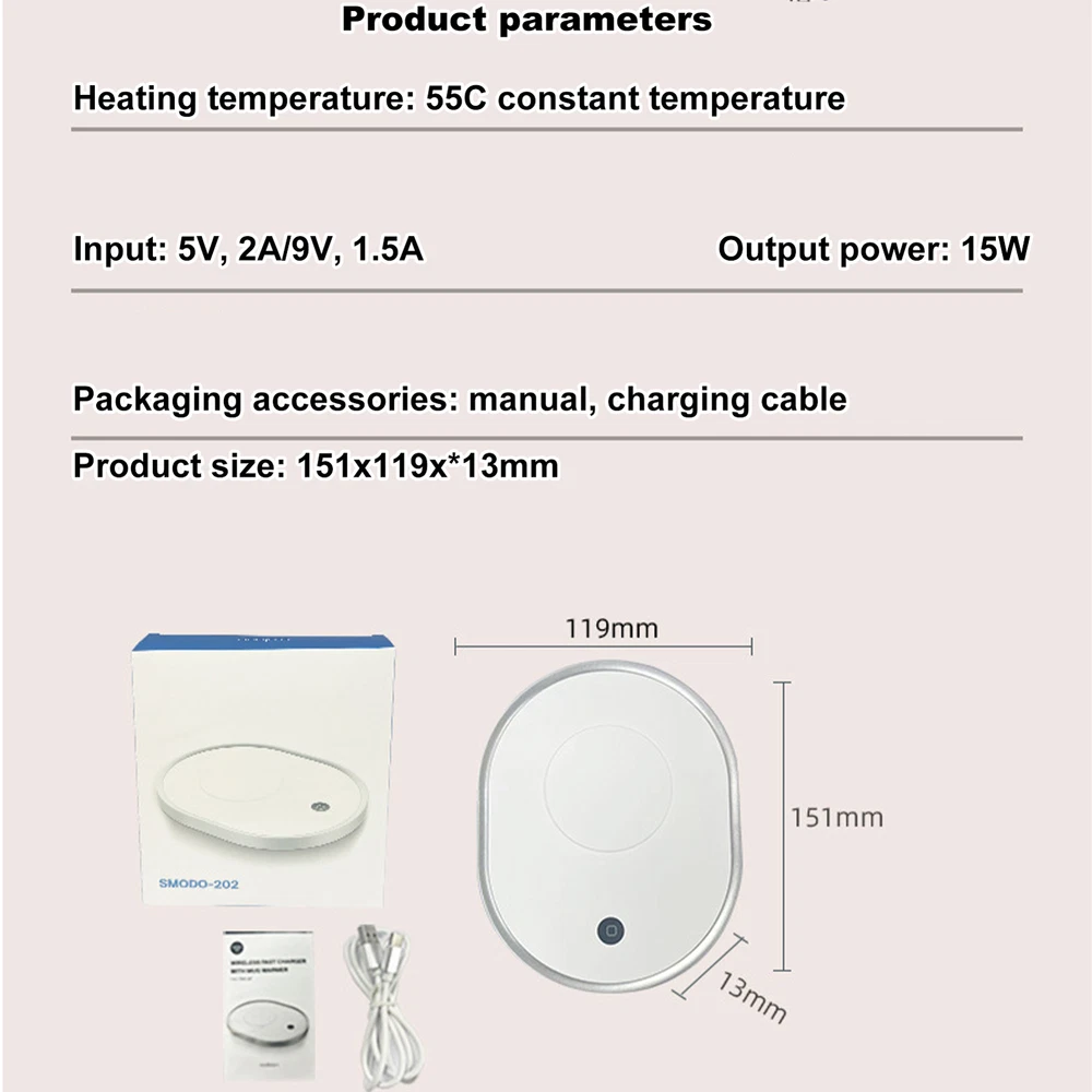 Smart Cordless Electric Coffee Mug Warmer Tea Cup Insulating Pad Heating Plate Bullet Points: Smart Temperature Control: Enjoy your hot drinks at a perfect 55C with our coffee mug warmer's smart temperature control and new ceramic coasters. Effortlessly maintain the ideal temperature and savor the convenience of warm beverages anytime, anywhere Versatile Companion: Charge your phone at 15W fast speed while keeping your coffee warm with this coffee mug warmer, a perfect hybrid for those outdoors who need to meet their mobile charging and drinking needs simultaneously Carefully Designed: Automatically prevent overheating and turn off when not in use with our coffee mug warmer. Study or work with peace of mind knowing that we've designed with your safety in mind Long-Lasting: Our coffee mug warmer uses a noiseless heating system, allowing you to enjoy a quiet environment without being distracted by noisy devices. With a smart wireless charging coaster, keep your drink warm for longer and pay attention to your work Solid Durability: Made with sturdy, high temperature resistant materials, this new smart temperature control ceramic coaster withstands daily use and won't break, ensuring prolonged enjoyment Enjoy a hotter, tastier cup of coffee with our desk coffee warmer. Featuring ceramic coasters and a versatile wireless charger, you'll love how easy it is to keep your beverage warm and charged while working. Our automatic shut-off function ensures safety and peace of mind, without distracting noise or fragile components. Specification: Product name: coffee mug warmer Heating temperature: 55°C constant temperature Input: 5V, 2A/9V, 1.5A Output power: 15W Packaging accessories: manual, charging cable Product size: about 15.1x11.9x1.3cm/5.94x4.69x0.51 inches Packing List: Coffee mug warmer mat x1 (without cup) Charging cable x1 Instruction manual x1 Note: 1. Due to the different display and lighting effects, the actual color of the product may be slightly different from the color shown in the picture. Thanks! 2. Due to manual measurement, a measurement deviation of 1-3cm is allowed. 1.You can make a Credit payment via Paypal.Paypal will let you use MasterCard,Visa to pay. 2.Payment should be completed within 5 days after auction closed, or unpaid dispute will be filed for an closing auction.An unpaid case will be filled after 4 days. ● We strive for 100% customer satisfaction ! ● Positive Feedback is very important to us. ● We hope that you contact us immediately BEFORE you give us neutral or negative feedback, so that we can satisfactorily address your concerns. ● We promise to offer the lowest price and high quality produce. Dear buyers : ● Welcome to my store ! ● Your satisfaction is our top goal,we appreciate your patronizing. ● If you have any questions, please contact us before leave negative or neutral feedback, we will try our best to solve the issue to your satisfaction, thanks ! ● If you are satisfied with our service, please rate the details of the transaction (Detailed Seller Ratings) on eBay. ● Please always talk to us via ebay Message. ● We appreciate your business and look forward to growing our e-Bay sales with satisfied customers.