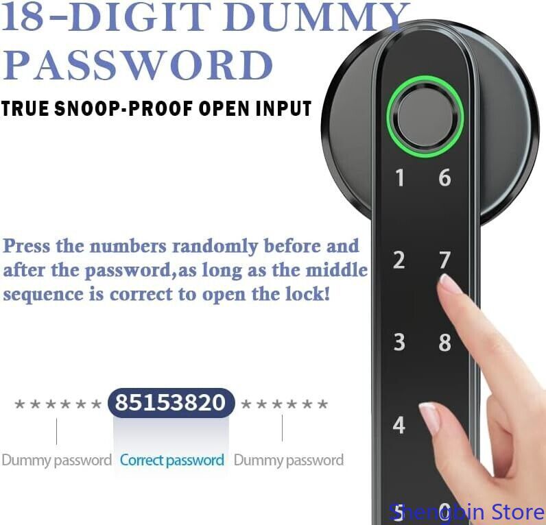 About this item: App control for all phones 4 unlocking modes Anti-snooping false password Fast always-on mode Fast always-on mode One touch to open Upgraded semiconductor sensor Easy installation USB emergency charging APPLICATION: Black Fingerprint Smart Door Lock for Home, Hotel, Office, Apartment, Bedroom, Warehouse, Office etc.