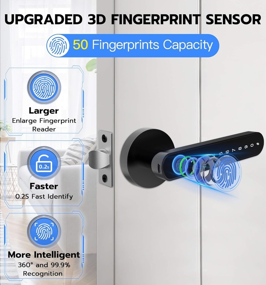 Smart Fingerprint Door Lock - Keyless Entry with App Control & 4 Unlock Methods ‹ › ‹ › ‹ › ‹ › ‹ › ‹ › ‹ › ‹ › Smart Fingerprint Door Lock - Keyless Entry with App Control & 4 Unlock Methods Unlock Your World Effortlessly: 4 Unlocking Methods: Seamlessly access your home with fingerprint unlock, passcode unlock, App control via Bluetooth, or a backup mechanical key. Experience the pinnacle of convenience and security. Impeccable Security Features: High Security & Durability: Crafted from robust Alloy Steel and Zinc, this door lock provides an added layer of safety, perfect for bedrooms, hotels, apartments, and private spaces. Simple Installation: DIY Friendly: Replace your original lock effortlessly with just a screwdriver (included). No additional drilling or locksmith needed. The reversible door handle caters to both left and right-handed doors. Extended Battery Life: Long-lasting Performance: This electronic lock offers low power consumption, assuring over a year of battery life. Receive timely reminders for low battery, and when in need, simply utilize a power bank for emergency access. Unmatched Customer Support: Peace of Mind: Enjoy a 12-month Free Trial and free lifetime technical support. Should you require assistance or wish to replace or refund, our hassle-free customer service stands by your side. Why Choose Our Smart Fingerprint Door Lock? Elevate your home's security with our Smart Fingerprint Door Lock, where cutting-edge technology meets exceptional convenience. With its versatile unlocking methods and robust construction, this lock is designed for modern living. Say goodbye to fumbling for keys and welcome a new era of intelligent home security. Transform your entryway today with our state-of-the-art Smart Fingerprint Door Lock. Shipping Free & Fast Shipping - We offer free shipping to most of the USA with a normal delivery time of 3-7 days. However, due to the current situation, additional delivery time (up to 3 weeks) may be required for some items. Alternative Carriers - We may use alternative carriers (e.g. USPS, FedEx, UPS, etc.) to ensure your package arrives safely and on time. Due to the use of multiple carriers, we are unable to provide a tracking number automatically. Handling Time - Orders are processed and shipped within 1-2 business days of receiving cleared payment. Shipping Restrictions - Shipping to Alaska, Hawaii, Puerto Rico, Guam, and other US territories may incur shipping charges or delivery restrictions. Please contact us before ordering, or your order can be refunded/cancelled. State Restrictions - There may be restrictions based on your state of purchase. For example, certain items may not be shipped to California due to state regulations. Contact for Tracking Updates - If you require tracking updates or have any concerns about the delivery of your order, please feel free to contact us, and we will be happy to assist you. Return 30-Day Hassle-Free Returns - We want you to be completely satisfied with your purchase. If you are not, you can return the item within 30 days of receiving it for a full refund or exchange. Easy Return Process - To start a return, simply contact us and we will provide you with a prepaid return shipping label and detailed instructions. Restocking Fee - There are no restocking fees for returns. However, the buyer is responsible for return shipping costs if the return is not due to a seller's error. Refund Processing Time - Refunds will be processed within 5 business days of receiving the returned item in its original condition. Payment We accept all major credit cards, PayPal, and Apple Pay for your convenience. Your payment information is secure and encrypted to ensure a safe and seamless transaction. Please complete your payment within 3 days of purchase to avoid any delays in shipping. Feedback Your feedback is extremely important to us. We strive to provide the best products and customer service possible. If you are satisfied with your purchase, please take a moment to leave us a positive review. If you have any concerns or issues with your order, please contact us before leaving negative feedback. We are committed to resolving any problems and ensuring your satisfaction. Contact Us If you have any questions or concerns, please feel free to reach out to our customer support team. You can contact us through the eBay messaging system. We are available Monday to Friday, 9:00 am to 5:00 pm EST, and we will do our best to respond to your inquiry within 24 hours. Buy it now and enjoy a pleasant shopping experience! UPC: Not Set Model: Not Set Unit Quantity: 2 Material: Alloy Steel,Zinc Suitable For: Front Door,Bedroom,Interior,Room,Home,Hotel,Garage,Apartment,Cloakroom,Pantry,Closet,Office,School Mounting: Universal Features: Keyless,Fingerprint Unlock,Passcode Unlock,App Controlled,Bluetooth Connectivity,Backup Mechanical Key Unlock,Auto Lock,Passage Mode,Anti-Peeping Passcode,Long Battery Life,Low Power Consumption Items Included: Key,Mechanical Keys,User Manual,Lock Latch,Spindle,Connecting Pipe,Screwdriver,All Screws,Front Handle,Rear Handle,Strike Plate,Strike Hole Cover Brand: Unbranded Type: Smart Lock Color: Black Finish: Oil Rubbed Throw Length: Not Set Item Height: Not Set Item Width: Not Set Cross Bore Diameter: Standard MPN: Not Set Number in Pack: 1 Style: Modern Item Depth: 2.6 in Country/Region of Manufacture: Not Set ANSI Grade: Not Specified Item Weight: 2 lb Door Handing: Universal/Reversible Manufacturer Warranty: Not Set Unit Type: lb Fixings Supplied: Not Set