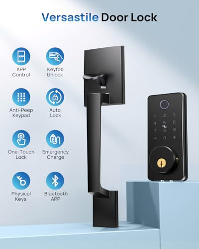 Menu 1. We require immediate payment. 2. We currently accept payment via eBay managed payments only. 3. Once payment is cleared, we will dispatch your shipment within 1-3 business days. Please refer to the "Shipping" tab for more information regarding shipping speed to your destination. Fingerprint Front Door Lock Set APP Smart Control Keyless Entry Door Lock with 2 Lever Handles Auto Lock Electronic Keypad Deadbolt for Front Door Home Use Apartment Product description APP smart control enables ① keyless entry within bluetooth range, ②grant access and manage users, ③temporary passcode and auto lock, ④view all operation history, ⑤monitor battery power anytime. Secure fingerprint unlock in just 0.1s with 160x160 pixels recognition and 508 DPI scanner. Accommodate up to 100 fingerprints for frequent guests or additional finger options for yourself. Supports multiple ways to access: smart APP control, fingerprint, password, key fobs and keys. 150 password users and 100 card users can be stored. No more beeping sound when pressing keys in silent mode. Auto lock or one-touch locking effectively avoids forgot locking the door while leaving in a hurry. One time password for temporary visitors and anti-peeping password to protect privacy. IP63 Waterproof level. Easy setup without drilling, compatible with most US standard doors (35mm (1-3/8‘’)-55mm(2-3/16'') door thickness) in minutes. PLEASE MESSAGE US IF YOU HAVE ANY OTHER QUESTIONS, AND MANY THANKS FOR READING ALL OF THIS. Copyright ©#. All Rights Reserved.