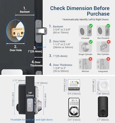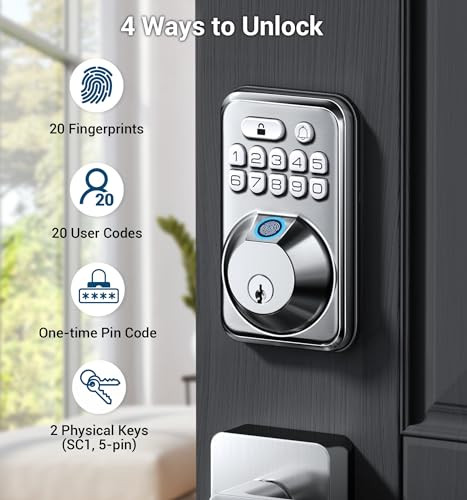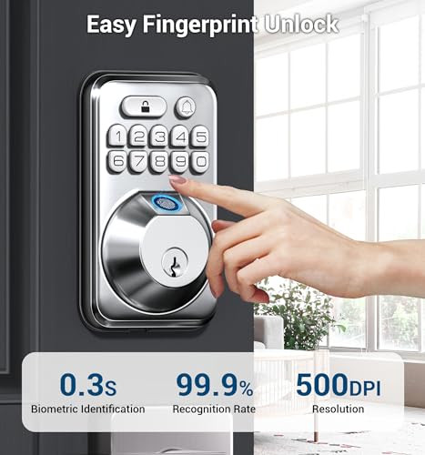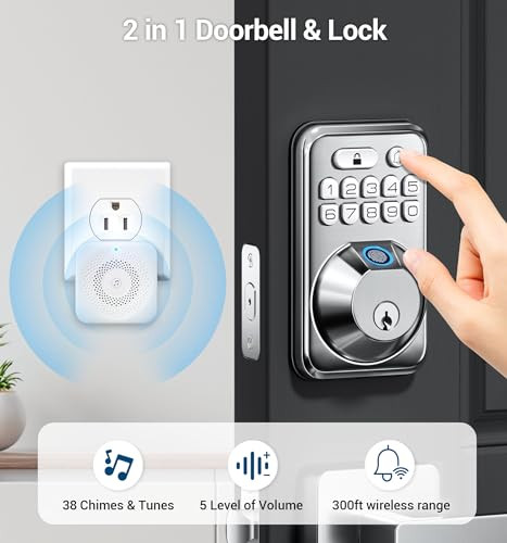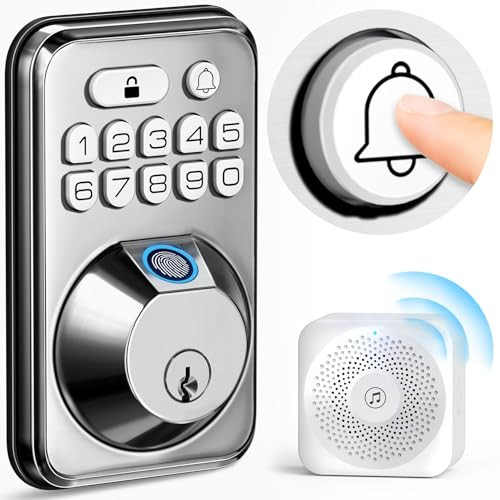 Smart Fingerprint Keypad Deadbolt Lock with Wireless Doorbell – Keyless Entry