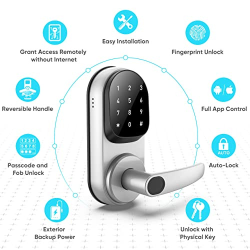 Return Policy Fast Delivery Trusted seller Keyless Entry Smart Lock - Fingerprint & Keypad Access, Front Door Handle, Silver Product Description [ Smart Door Lock: The Ultimate Solution for Rental Hosts and Homeowners] smart door lock offers a seamless solution for Airbnb short-term rental hosts, rental property management, and self-housing residents. Easily generate passcodes remotely and share them with your visitors. [6-in-1 Keyless Entry Smart Lock: Versatile Access Options] Unlock your door in six different ways: using the ergonomic fingerprint sensor, custom passcodes, key card fobs, wireless key fobs, two backup physical keys, or through full app control. Never worry about forgetting your keys and locking yourself out. Auto-lock is enabled to secure your door in case you forget to lock it on your way out. [Fingerprint on Handle: Quick and Secure Access] Designed for quick and secure access, the door handle features an ergonomic patented fingerprint sensor. Simply turn the handle with your thumb to recognize your prints and open the door in one step! [DIY & Easy Installation: No Hassle Setup] Install your smart door lock in minutes using just a Phillips screwdriver—no extra drills or locksmiths needed. The reversible door handle is suitable for both left and right-handed doors. Note that due to its size, it may not be compatible with screen doors or storm doors. [Remote Control/WiFi Access: Enhanced Convenience] Pair your smart door lock with the optional WiFi Gateway (sold separately) for remote locking/unlocking from anyw, code setup from a distance, and real-time access log checks. Enjoy enhanced convenience and peace of mind with 's smart technology. Shipping Returns Payment Shipping Shipping is FREE to all addresses other than APO/PO boxes in the lower 48 states. All our stock ships from US-based warehouses. Shipped via USPS or UPS (depending on location and package weight) Unless stated otherwise, all orders will ship within 24-72 hours of your payment being processed. Check our feedback to see the great reviews of FAST shipping we offer. Returns Seller does not accept returns Payment We currently accept payment via eBay managed payments only. Once payment is cleared, we will dispatch your shipment within 1-3 business days. Please refer to the "Shipping" tab for more information regarding shipping speed to your destination.