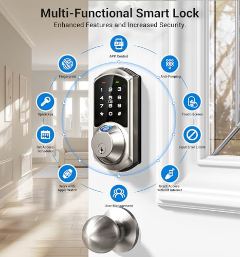 Return Policy Fast Delivery Trusted seller Fingerprint Smart Lock for Front Door, 7-in-1 Keyless Entry Deadbolt with App Control, Electronic Digital Locks with Touchscreen Keypad, Auto Lock, Easy Install, Waterproof, Satin Nickel Product Description Seven in One Smart Door Locks: The smart deadbolt has seven options to access, Fingerprint + App + Fobs +Code +eKey + Mechanical key, and compatible with Apple Watch Efficient Access Control: Work with up to fifty fingerprints and two hundred and fifty multiple user codes, this keyless deadbolt supports remotely generate and share one-time, permanent, recurring, and scheduled codes to different users Enhanced Functionality: The keypad lock features auto lock, one touch lock, anti-peeping passcode, wrong entry limit, privacy mode, silent mode, passage mode, low battery alarm, waterproof, heat and cold-resistant capabilities Remote Access: By connecting the electric door lock with G2 gateway (sold separately), you can remotely control and manage passcodes, check real-time access log and pushed notifications, voice control with Alexa and Google Assistant Easy Installation: Just with a screwdriver, you can have it up and running. The digital lock is compatible with most US standard doors. We offers technical support and after-sales email service Shipping Returns Payment Shipping Shipping is FREE to all addresses other than APO/PO boxes in the lower 48 states. All our stock ships from US-based warehouses. Shipped via USPS or UPS (depending on location and package weight) Unless stated otherwise, all orders will ship within 24-72 hours of your payment being processed. Check our feedback to see the great reviews of FAST shipping we offer. Returns Seller does not accept returns Payment We currently accept payment via eBay managed payments only. Once payment is cleared, we will dispatch your shipment within 1-3 business days. Please refer to the "Shipping" tab for more information regarding shipping speed to your destination.