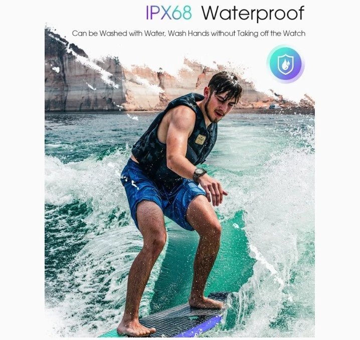 ⌚【Daily Fitness Tracker for Men and Women】This Fitness Smart watch accurately and conveniently track your daily health status, such as steps, distance, and calories, helping you stay motivated throughout the day and focus on achieving all fitness goals. Supporting up to 12 sports modes such as jogging, fast walking, biking, climbing, spinning, yoga, indoor running, integrated training, gymnastics, basketball, football, and rowing. ⌚【24/7 Heart Rate, Blood Oxygen, and Sleep Tracking】This smart watch Continuously monitor your real-time heart rate for 24 hours, and provide a comprehensive analysis of your sleep quality (deep sleep, light sleep, and awake time) to help you develop a healthier lifestyle. Plus, you can measure your blood oxygen anytime, anywhere - view your blood oxygen levels and check how fit you are. ⌚【IP68 Waterproof Rating and Long-Lasting Battery】Featuring an IP68 waterproof rating, the smart watch allows you to wear it when sweating, washing your hands, or running in the rain with no worries. The watch can last for up to 7 days after fast charging with the magnetic charging head - allowing your watch to be ready for all your favorite activities. ⌚【On-wrist Message Notification and Music Controller】This smartwatch syncs with most iOS or Android phones and receive instant app notifications, messages and calls right on your wrist through vibration alerts, so you won't miss anything important anymore. Additionally, the fitness watch can also double as a music controller, helping you control music through the watch directly when synchronizing with your phone. ⌚【More Useful Functions】The fantastic activity tracker additionally features many practical functions that help you live smarter and go further, such as alarm clock, 24/7 weather report, stopwatch, countdown timer, deep breathing guide, sedentary reminder, brightness adjustment, locating your phone, and more.