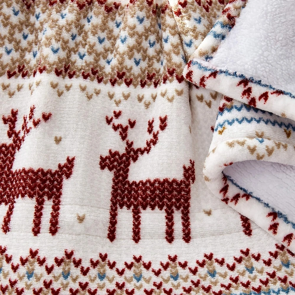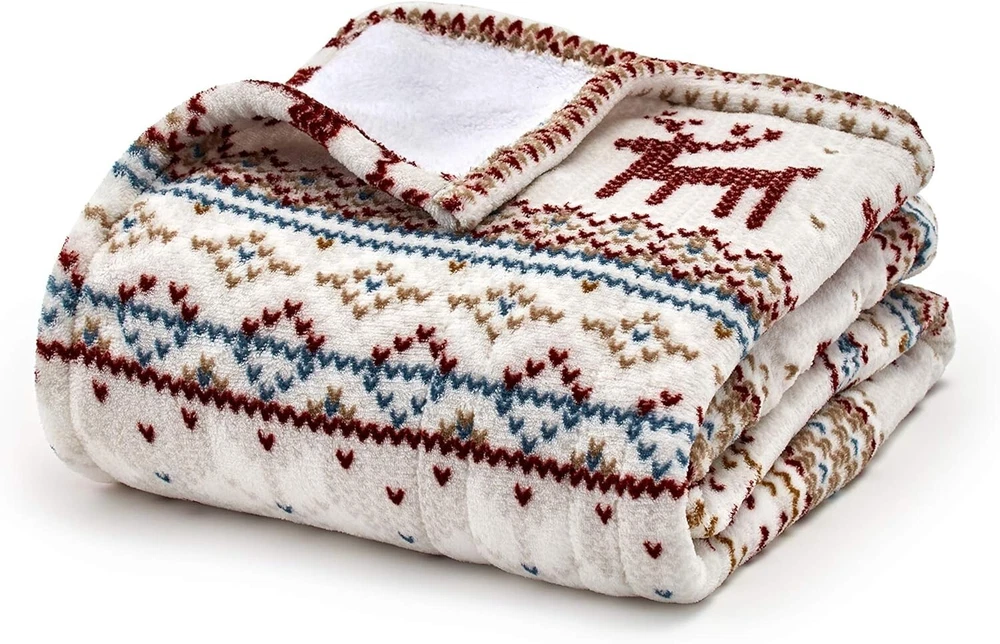 Smart Heated Electric Throw Blanket - Reversible Sherpa - Wi-Fi Enabled - Compatible with Alexa, Google, iOS, Android - Fair Isle Silver Polyester CONVENIENT HANDS-FREE CONTROL: Leave analog behind and stay cozy without having to get up in the cold. Simply use your voice with your smart device or your app to control your wi-fi-only throw blanket. Press the on/off power button until the light turns blue to turn on and control the heat settings with your smart device or . No manual controller. OPERATES ON BAND ONLY INCLUDES: (1) Wi-Fi controlled plush printed electric heated throw MATERIALS: Made from ultra-soft 100% polyester brushed microplush for an incredibly cozy feel FEATURES: This plush reversible sherpa lined throw will keep you warm round. Control your heat settings through the app or via Alexa voice commands. CARE INSTRUCTIONS: Conveniently machine washable. Tumble dry on lowest setting. Remove from drier promptly. Redecorate your living room with the Comfort Plush Heated Throws. You will want to cozy up on the sofa with these comfy colors. Includes a 4-hour automatic shut off for safety and has been ETL tested.
