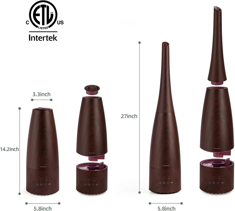 Recommended Room Size: Medium Power Source: Electrical Wattage: 75 Watts gtin13: Does Not Apply Batteries: 1 Lithium Metal Batteries Required. (included) Features: Remote Control, Quiet Operation, Automatic Shut Off Floor Area: 269.1 Square Feet Power: 75 watts Finish: Glossy Brand: Unbranded Number of Speeds: Variable Application: Whole Room, Personal Type: Tower Product Dimensions: 5.8"d X 5.8"w X 27"h Item Depth: 5.8 in Coverage: 269.1 sq ft Room: Bedroom, Kid's Bedroom, Nursery Tank Capacity: 2.3 liters Operating Sound Rating: 25 dB Control Method: Remote, Touch UPC: Does Not Apply Smart Home Compatibility: Universal Special Feature: Remote Control, Quiet, Auto Shut Off Humidification Method: Ultrasonic Voltage: 120 volts Operation Mode: Ultrasonic Timer Control: Timerless Filter Type: Filter Color: Dark Wood Room Type: Bedroom,nursery,room Smart Home Protocol: Wi-Fi Item Weight: 1.2 kg
