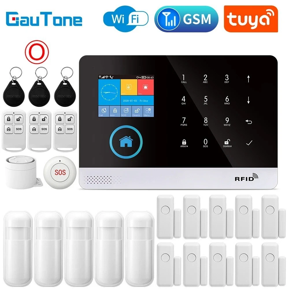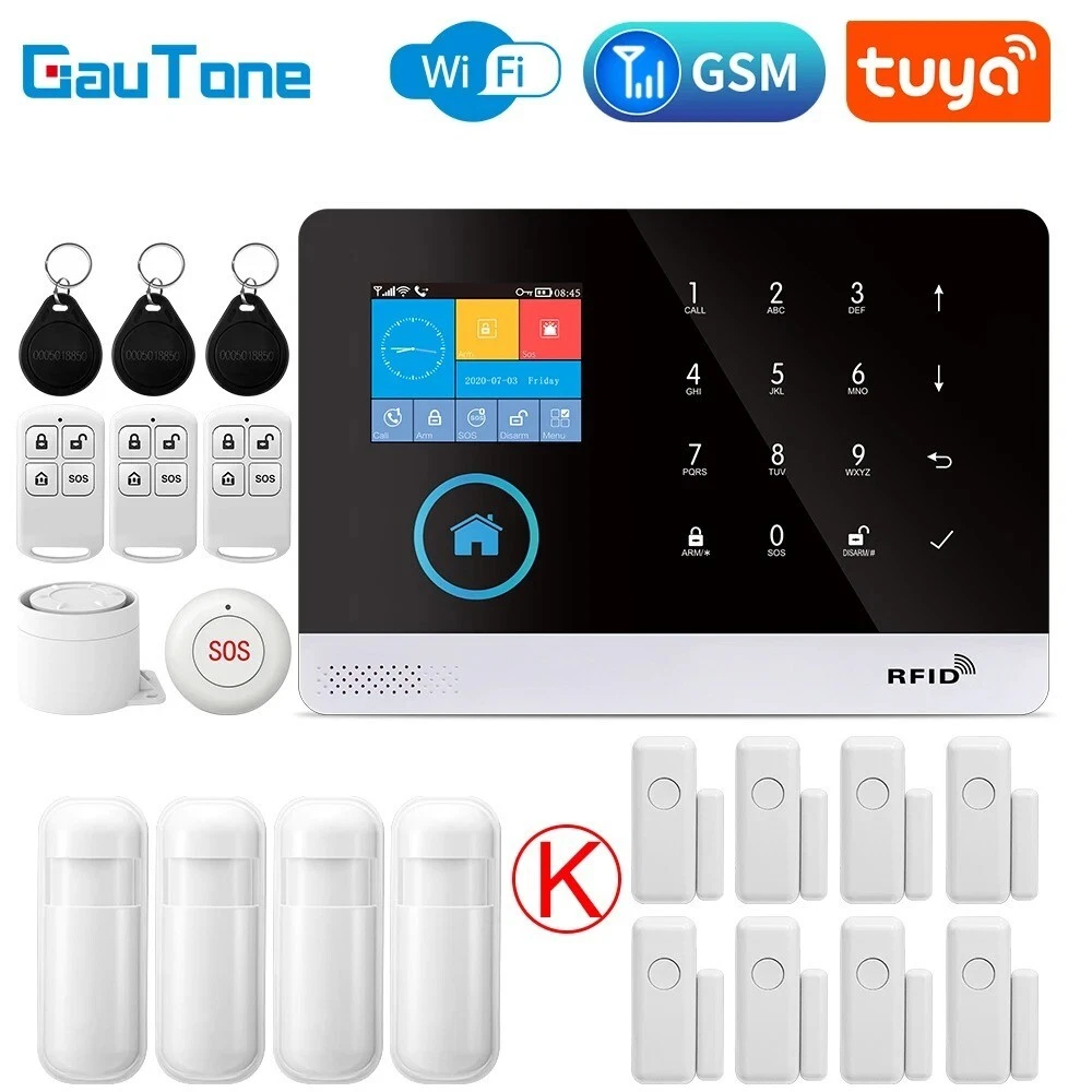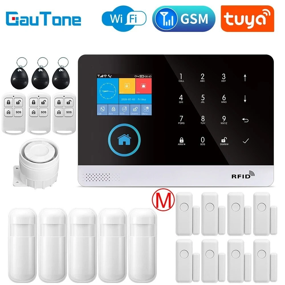 Elegant Design and Easy Installation: The Wireless Alarm System features a sleek and sophisticated design in white, seamlessly blending with any home decor. Smart Home Compatibility: This alarm system is fully compatible with Google Assistant, Amazon Alexa, and Tuya, allowing for convenient voice control and integration into your smart home ecosystem. You can manage your security system hands-free. Customizable Alerts and Zones: With support for multiple alarm types and customizable access zones, the PGST system can be tailored to meet your specific security needs. You can set up various zones for different areas of your home. No Monthly Fees and Flexible Communication: Enjoy the benefits of a professional-grade security system without the burden of monthly fees or contracts. The alarm system supports a 2G SIM card (not included) for remote alerts. Advanced Features for Enhanced Security: Equipped with a rechargeable lithium battery, a loud 120dB siren, and various voice alerts in multiple languages, this alarm system offers robust security features. Hign-concerned Chemical None Zone Number 99 Alarm Type The Alarm,sms,Apps Control Output Number Less than 500mA Model Number PG-103 tuya Kit Configuration Door/Window Sensor Size 185x125x14.7mm Power DC 5V Connection Type WireLess Arming Type APP Video Interface Yes Display Yes Password Keyboard Yes Brand Name GauTone Origin Mainland Smart home platform Tuya Certification CE,RoHS Input voltage DC 5V Working current Less than 120mA Standby current Less than 80uA Siren output Less than 500mA Wireless frequency 433Mhz Wireless coding EV1527 Backup battery 3.7V/500mAh Lithium battery Working temperature 0℃~55℃ Relative humidity Less than 82%RH Host size 185x125x14.7mm Feature GSM Alarm Feature 1 Tuya / Smart Life app Control Feature 2 Alarm System Feature 3 Alarm System for Home Security Support Support Alexa / Google Assistant GauTone PG103 Alarm System for Home Burglar Security 433MHz WiFi GSM Alarm Wireless Tuya Smart House App Control Notice: 1、The alarm hosts for all PG-103 in this link are all WIFI GSM(2G) GPRS versions. Tuya Smart Life app control. 2、If you need to purchase the 3G or 4G version of PG-103, please contact our customer service staff before purchasing. thank you! Packing List: Set A 1 x Alarm Panel Set B 1 x Alarm Panel 1 x PIR Motion Sensor 1 x Door Sensor 2 x Remote Controller 2 x RFID Tag 1 x Wired Siren Set C 1 x Alarm Panel 2 x PIR Motion Sensor 2 x Door Sensor 2 x Remote Controller 2 x RFID Tag 1 x Wired Siren Set D 1 x Alarm Panel 2 x PIR Motion Sensor 4 x Door Sensor 2 x Remote Controller 2 x RFID Tag 1 x Wired Siren Set E 1 x Alarm Panel 3 x PIR Motion Sensor 3 x Door Sensor 2 x Remote Controller 2 x RFID Tag 1 x Wired Siren Set F 1 x Alarm Panel 3 x PIR Motion Sensor 6 x Door Sensor 2 x Remote Controller 2 x RFID Tag 1 x Wired Siren Set G 1 x Alarm Panel 4 x PIR Motion Sensor 4 x Door Sensor 2 x Remote Controller 2 x RFID Tag 1 x Wired Siren Set H 1 x Alarm Panel 4 x PIR Motion Sensor 6 x Door Sensor 2 x Remote Controller 2 x RFID Tag 1 x Wired Siren Set J 1 x Alarm Panel 5 x PIR Motion Sensor 5 x Door Sensor 2 x Remote Controller 2 x RFID Tag 1 x Wired Siren Set K 1 x Alarm Panel 4 x PIR Motion Sensor 8 x Door Sensor 3 x Remote Controller 3 x RFID Tag 1 x Wired Siren Set L 1 x Alarm Panel 4 x PIR Motion Sensor 9 x Door Sensor 3 x Remote Controller 3 x RFID Tag 1 x Wired Siren Set M 1 x Alarm Panel 5 x PIR Motion Sensor 8 x Door Sensor 3 x Remote Controller 3 x RFID Tag 1 x Wired Siren Set N 1 x Alarm Panel 5 x PIR Motion Sensor 9 x Door Sensor 3 x Remote Controller 3 x RFID Tag 1 x Wired Siren Set O 1 x Alarm Panel 5 x PIR Motion Sensor 10 x Door Sensor 3 x Remote Controller 3 x RFID Tag 1 x Wired Siren Specifications: Material: High-quality ABS plastic Design and Style: Sleek, modern design with a user-friendly interface Performance and Property: Advanced 433MHz WiFi GSM connectivity for reliable signal transmission Parts and Accessories: Comprehensive kits with various sensor options, including PIR motion sensors and door sensors Usage and Purpose: Ideal for home security, providing real-time alerts and notifications Applicable Scenario: Suitable for residential and small commercial settings Features: Security System For A HomeSecurity System For Homes Wireless **Advanced Security Features** The GauTone PG103 Alarm System is a cutting-edge solution for home security, designed to safeguard your property against intruders. With its 433MHz WiFi GSM connectivity, this alarm system ensures reliable signal transmission, keeping you informed of any potential threats. The system's versatility is evident in the various sensor options available, including PIR motion sensors and door sensors, which can be tailored to your specific security needs. The inclusion of RFID tags and a wired siren further enhances the system's capabilities, providing an all-encompassing security solution for your home. **Ease of Use and Control** The GauTone PG103 Alarm System is not just about advanced security; it's also about user-friendly operation. The system's compatibility with the Tuya Smart House App allows for easy control and monitoring of your security system from anywhere, ensuring that you are always in the know. Whether you're at home or away, the app's intuitive interface enables you to manage your security settings with just a few taps on your smartphone or tablet. The system's wireless nature also means that installation is a breeze, allowing you to set up your home security system without the hassle of complex wiring. **Customizable and Expandable** Understanding that every home is unique, the GauTone PG103 Alarm System comes in a variety of kits to suit different security needs. From the basic Set A to the comprehensive Set O, you can choose the kit that best fits your home's layout and the level of protection you require. Each kit includes a robust alarm panel, PIR motion sensors, door sensors, and remote controllers, 