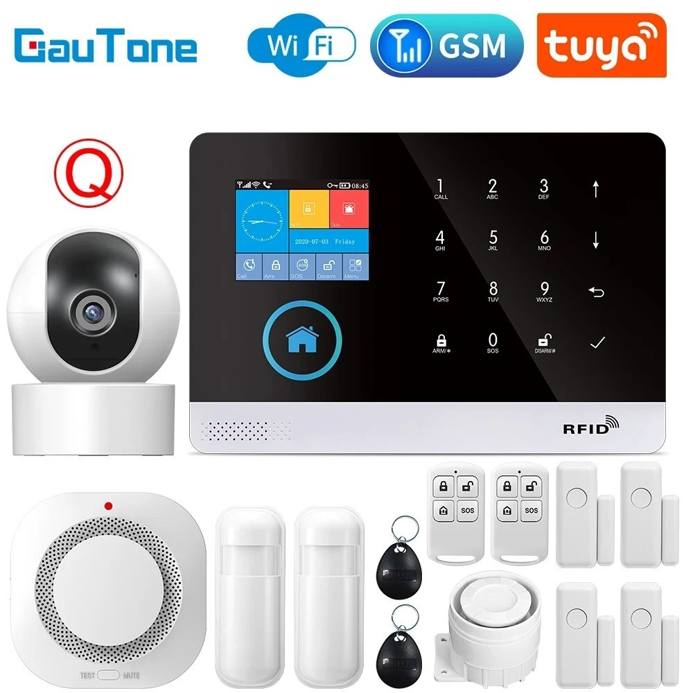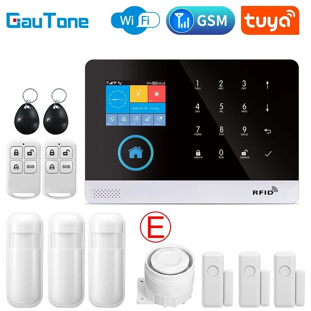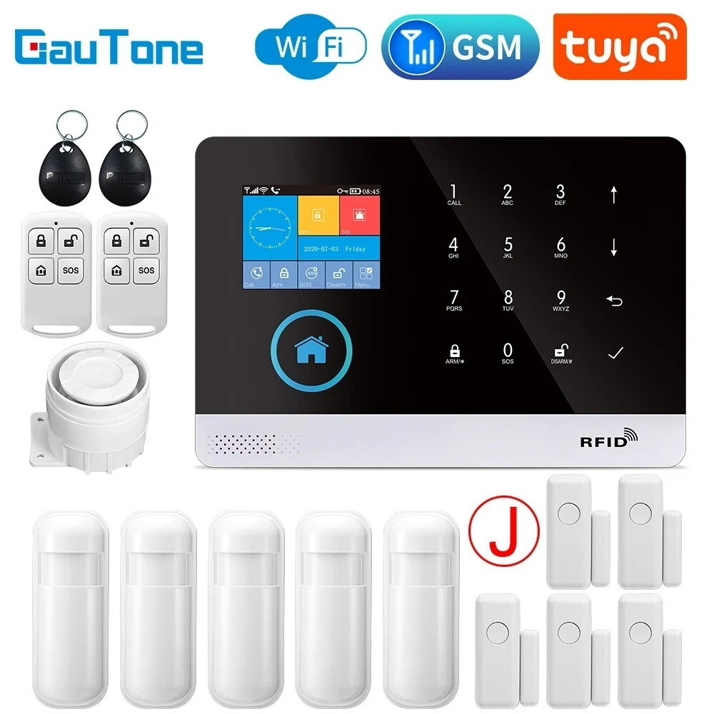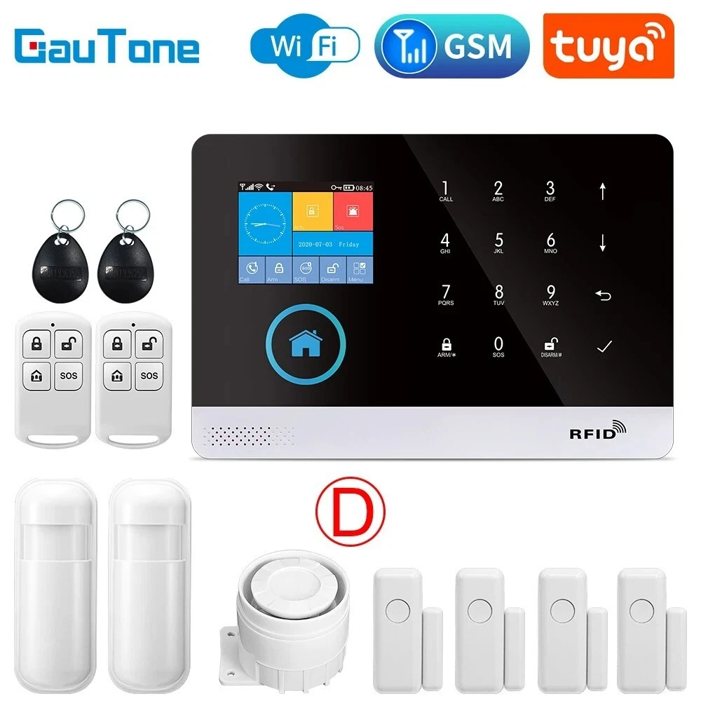 Elegant Design and Easy Installation: The Wireless Alarm System features a sleek and sophisticated design in white, seamlessly blending with any home decor. Smart Home Compatibility: This alarm system is fully compatible with Google Assistant, Amazon Alexa, and Tuya, allowing for convenient voice control and integration into your smart home ecosystem. You can manage your security system hands-free. Customizable Alerts and Zones: With support for multiple alarm types and customizable access zones, the PGST system can be tailored to meet your specific security needs. You can set up various zones for different areas of your home. No Monthly Fees and Flexible Communication: Enjoy the benefits of a professional-grade security system without the burden of monthly fees or contracts. The alarm system supports a 2G SIM card (not included) for remote alerts. Advanced Features for Enhanced Security: Equipped with a rechargeable lithium battery, a loud 120dB siren, and various voice alerts in multiple languages, this alarm system offers robust security features. Hign-concerned Chemical None Zone Number 99 Alarm Type The Alarm,sms,Apps Control Output Number Less than 500mA Model Number PG-103 tuya Kit Configuration Door/Window Sensor Size 185x125x14.7mm Power DC 5V Connection Type WireLess Arming Type APP Video Interface Yes Display Yes Password Keyboard Yes Brand Name GauTone Origin Mainland Smart home platform Tuya Certification CE,RoHS Input voltage DC 5V Working current Less than 120mA Standby current Less than 80uA Siren output Less than 500mA Wireless frequency 433Mhz Wireless coding EV1527 Backup battery 3.7V/500mAh Lithium battery Working temperature 0℃~55℃ Relative humidity Less than 82%RH Host size 185x125x14.7mm Feature GSM Alarm Feature 1 Tuya / Smart Life app Control Feature 2 Alarm System Feature 3 Alarm System for Home Security Support Support Alexa / Google Assistant GauTone PG103 Alarm System for Home Burglar Security 433MHz WiFi GSM Alarm Wireless Tuya Smart House App Control Notice: 1、The alarm hosts for all PG-103 in this link are all WIFI GSM(2G) GPRS versions. Tuya Smart Life app control. 2、If you need to purchase the 3G or 4G version of PG-103, please contact our customer service staff before purchasing. thank you! Packing List: Set A 1 x Alarm Panel Set B 1 x Alarm Panel 1 x PIR Motion Sensor 1 x Door Sensor 2 x Remote Controller 2 x RFID Tag 1 x Wired Siren Set C 1 x Alarm Panel 2 x PIR Motion Sensor 2 x Door Sensor 2 x Remote Controller 2 x RFID Tag 1 x Wired Siren Set D 1 x Alarm Panel 2 x PIR Motion Sensor 4 x Door Sensor 2 x Remote Controller 2 x RFID Tag 1 x Wired Siren Set E 1 x Alarm Panel 3 x PIR Motion Sensor 3 x Door Sensor 2 x Remote Controller 2 x RFID Tag 1 x Wired Siren Set F 1 x Alarm Panel 3 x PIR Motion Sensor 6 x Door Sensor 2 x Remote Controller 2 x RFID Tag 1 x Wired Siren Set G 1 x Alarm Panel 4 x PIR Motion Sensor 4 x Door Sensor 2 x Remote Controller 2 x RFID Tag 1 x Wired Siren Set H 1 x Alarm Panel 4 x PIR Motion Sensor 6 x Door Sensor 2 x Remote Controller 2 x RFID Tag 1 x Wired Siren Set J 1 x Alarm Panel 5 x PIR Motion Sensor 5 x Door Sensor 2 x Remote Controller 2 x RFID Tag 1 x Wired Siren Set K 1 x Alarm Panel 4 x PIR Motion Sensor 8 x Door Sensor 3 x Remote Controller 3 x RFID Tag 1 x Wired Siren Set L 1 x Alarm Panel 4 x PIR Motion Sensor 9 x Door Sensor 3 x Remote Controller 3 x RFID Tag 1 x Wired Siren Set M 1 x Alarm Panel 5 x PIR Motion Sensor 8 x Door Sensor 3 x Remote Controller 3 x RFID Tag 1 x Wired Siren Set N 1 x Alarm Panel 5 x PIR Motion Sensor 9 x Door Sensor 3 x Remote Controller 3 x RFID Tag 1 x Wired Siren Set O 1 x Alarm Panel 5 x PIR Motion Sensor 10 x Door Sensor 3 x Remote Controller 3 x RFID Tag 1 x Wired Siren Specifications: Material: High-quality ABS plastic Design and Style: Sleek, modern design with a user-friendly interface Performance and Property: Advanced 433MHz WiFi GSM connectivity for reliable signal transmission Parts and Accessories: Comprehensive kits with various sensor options, including PIR motion sensors and door sensors Usage and Purpose: Ideal for home security, providing real-time alerts and notifications Applicable Scenario: Suitable for residential and small commercial settings Features: Security System For A HomeSecurity System For Homes Wireless **Advanced Security Features** The GauTone PG103 Alarm System is a cutting-edge solution for home security, designed to safeguard your property against intruders. With its 433MHz WiFi GSM connectivity, this alarm system ensures reliable signal transmission, keeping you informed of any potential threats. The system's versatility is evident in the various sensor options available, including PIR motion sensors and door sensors, which can be tailored to your specific security needs. The inclusion of RFID tags and a wired siren further enhances the system's capabilities, providing an all-encompassing security solution for your home. **Ease of Use and Control** The GauTone PG103 Alarm System is not just about advanced security; it's also about user-friendly operation. The system's compatibility with the Tuya Smart House App allows for easy control and monitoring of your security system from anywhere, ensuring that you are always in the know. Whether you're at home or away, the app's intuitive interface enables you to manage your security settings with just a few taps on your smartphone or tablet. The system's wireless nature also means that installation is a breeze, allowing you to set up your home security system without the hassle of complex wiring. **Customizable and Expandable** Understanding that every home is unique, the GauTone PG103 Alarm System comes in a variety of kits to suit different security needs. From the basic Set A to the comprehensive Set O, you can choose the kit that best fits your home's layout and the level of protection you require. Each kit includes a robust alarm panel, PIR motion sensors, door sensors, and remote controllers, 