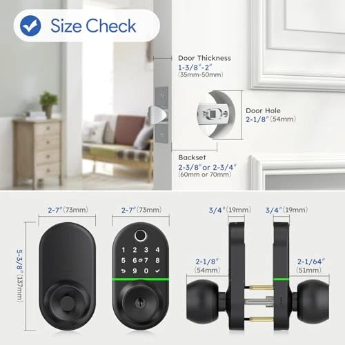 Return Policy Fast Delivery Trusted seller Keypad Door Knob for Front Door: Keyless Entry Door Lock, Biometric Door Lock with Fingerprint, Electronic Digital Door Lock, Exterior Code Door Lock from , Easy Installation Product Description 5-in-1 Unlocking: Choose your preferred unlocking ways: APP +50 fingerprints +50 passwords +50 cards +2 keys. If you connect to a WiFi gateway (Sold Separately), you can also control it remotely. Safety and Security: Made of durable aluminum alloy: corrosion-resistant and waterproof keypad. Tested to for 100,000 uses. All data is stored locally, with real-time monitoring via the APP to safeguard your home at any time. Easy Installation: Fits 99% of American homes' front or room doors. Swap your old lock in just 10 minutes with a screwdriver—no extra drilling needed. Our outdoor door knob works for both left and right-hand use. Ease of APP: Easily connect and control the smart knob via Bluetooth in just a few minutes. Setting right at your fingertips—no additional fees required. Guaranteed Satisfaction: Safety, stylish, and protected by a 30-day refund, 1-year warranty, and support. Upgrade to secure home living today! Shipping Returns Payment Shipping Shipping is FREE to all addresses other than APO/PO boxes in the lower 48 states. All our stock ships from US-based warehouses. Shipped via USPS or UPS (depending on location and package weight) Unless stated otherwise, all orders will ship within 24-72 hours of your payment being processed. Check our feedback to see the great reviews of FAST shipping we offer. Returns Seller does not accept returns Payment We currently accept payment via eBay managed payments only. Once payment is cleared, we will dispatch your shipment within 1-3 business days. Please refer to the "Shipping" tab for more information regarding shipping speed to your destination.